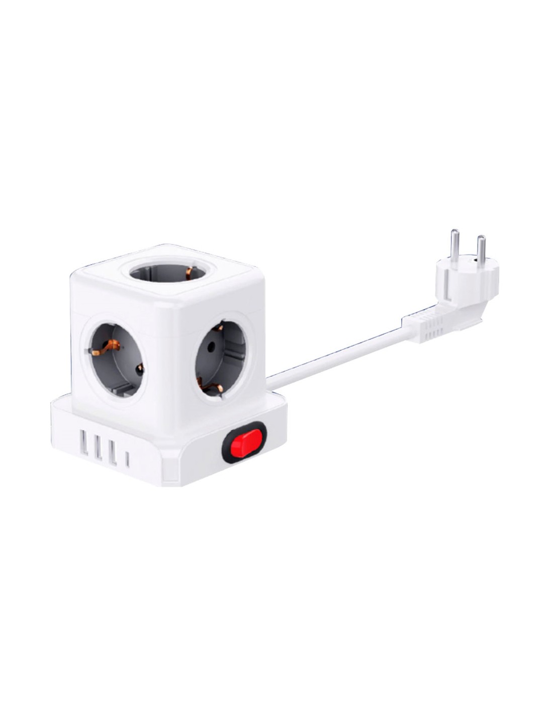 Base aérea 5 tomas schuko 2p+t con interruptor 16 a 3680 w 250 v~+ 4 usb 3,1a (3 a+1 c), cable de 1,5 m, blanca