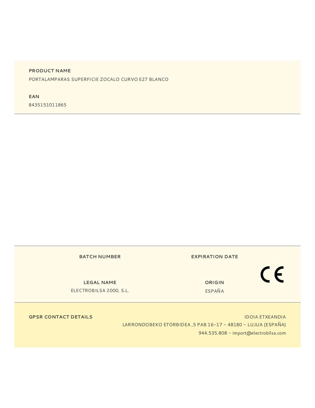 El portalámparas zócalo curvo es un portalámparas e27 para instalación en superficie con forma curvada de color blanco