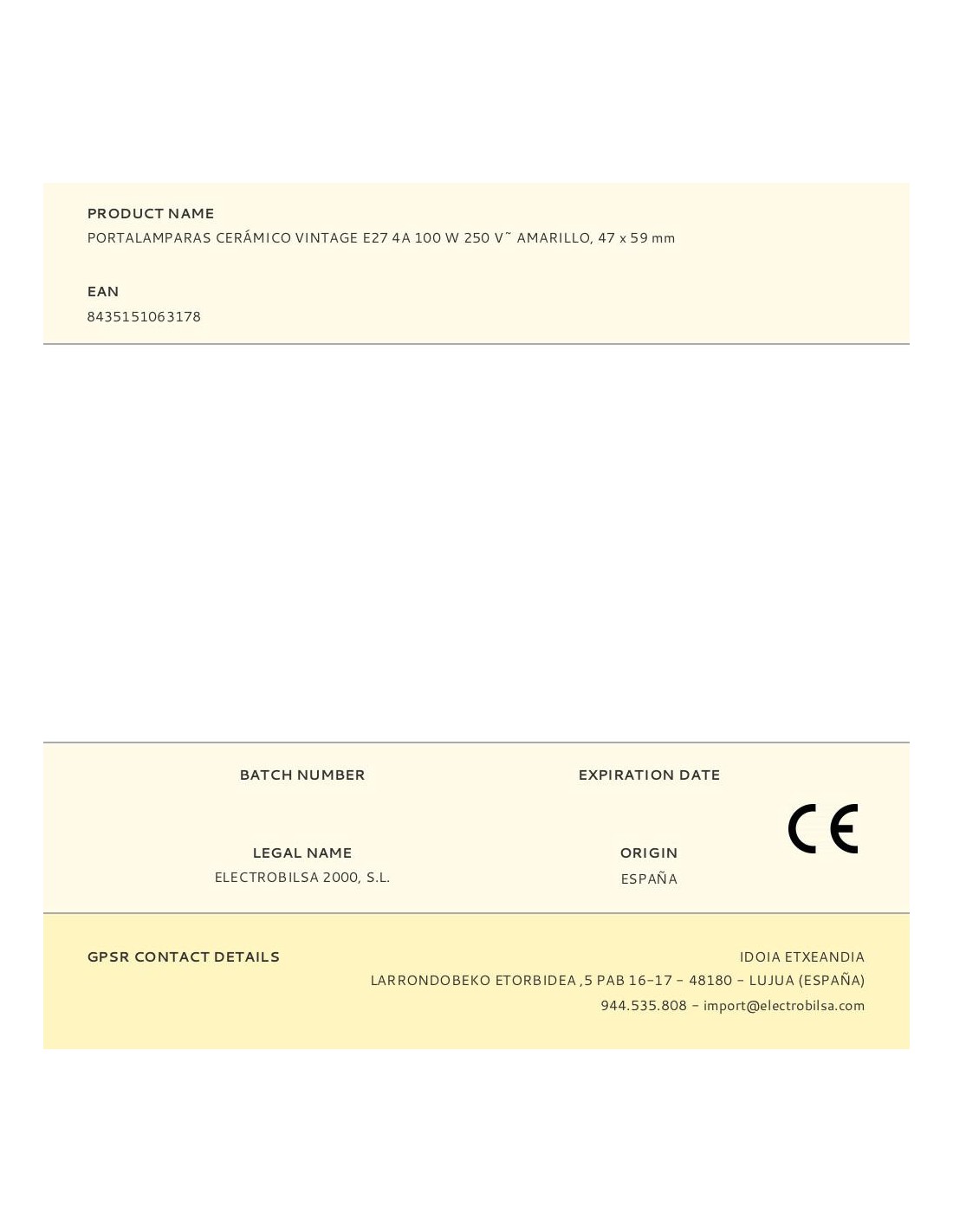 Portalámparas cerámico vintage e27 4 a 100 w 250 v~ amarillo, ø47 x 59 mm
