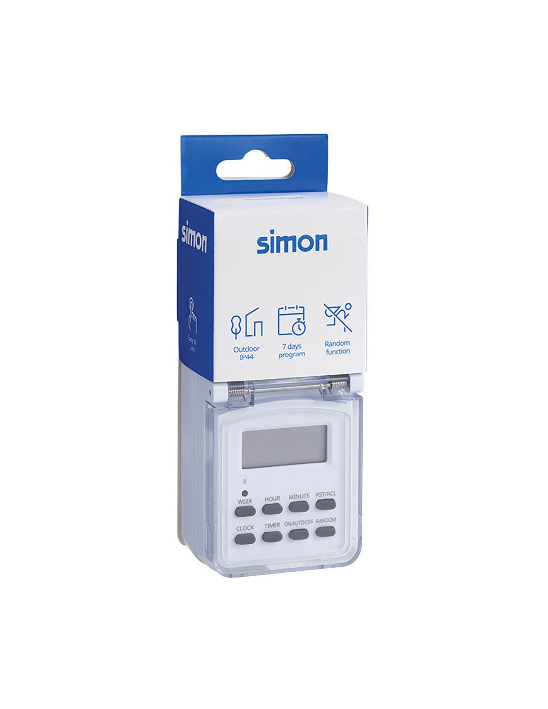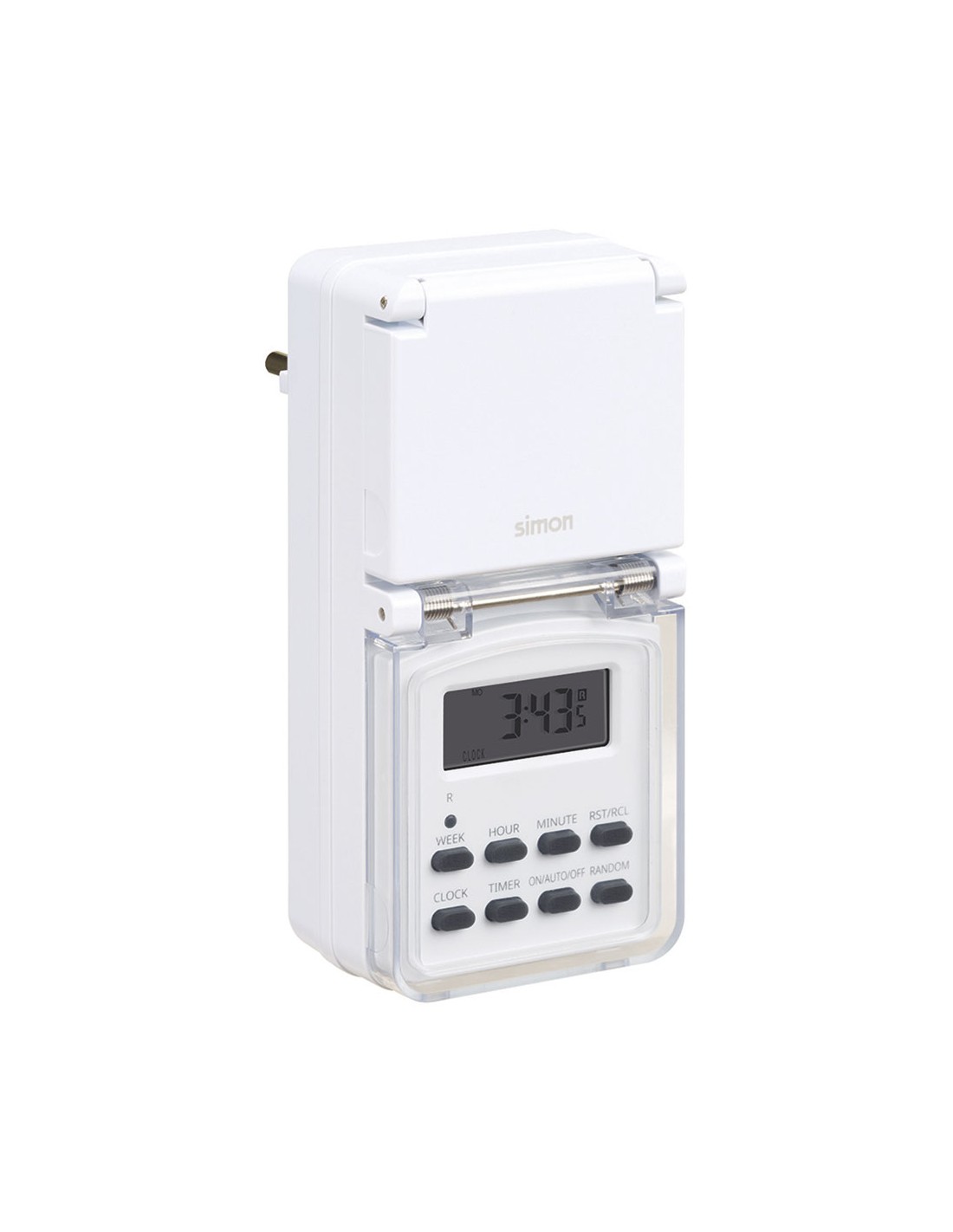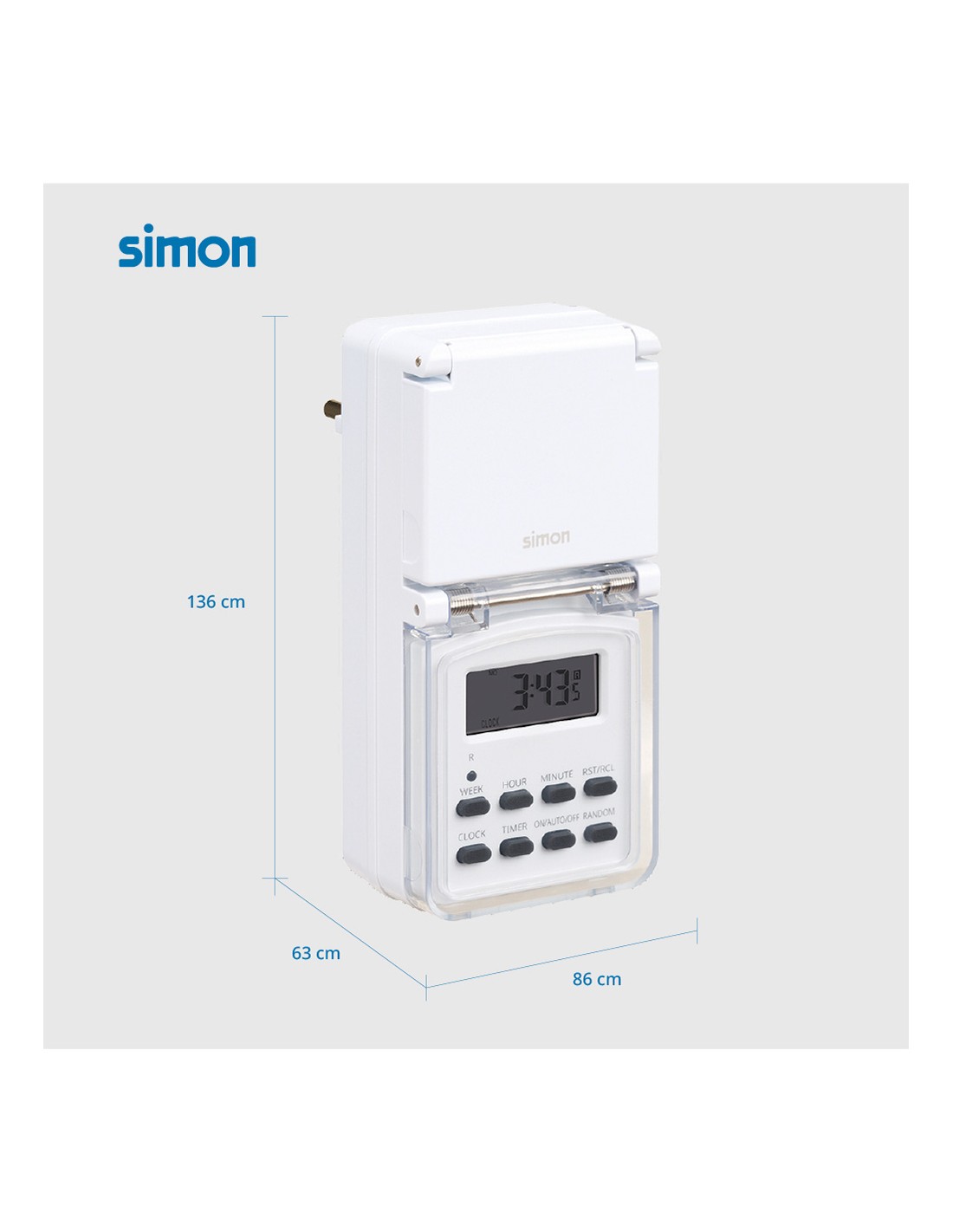 Programador digital semanal af711201 para exterior max. 3600 w, 16 a, 230 v ~50 hz, automatiza tus dispositivos eléctricos en exteriores, resiste salpicaduras o condiciones climáticas adversas ip44, hasta 10 programas on/off diarios con intervalos de 1 minuto funciones de horario de verano, simulación presencia, formato 12/24 h pantalla digital, botones intuitivos