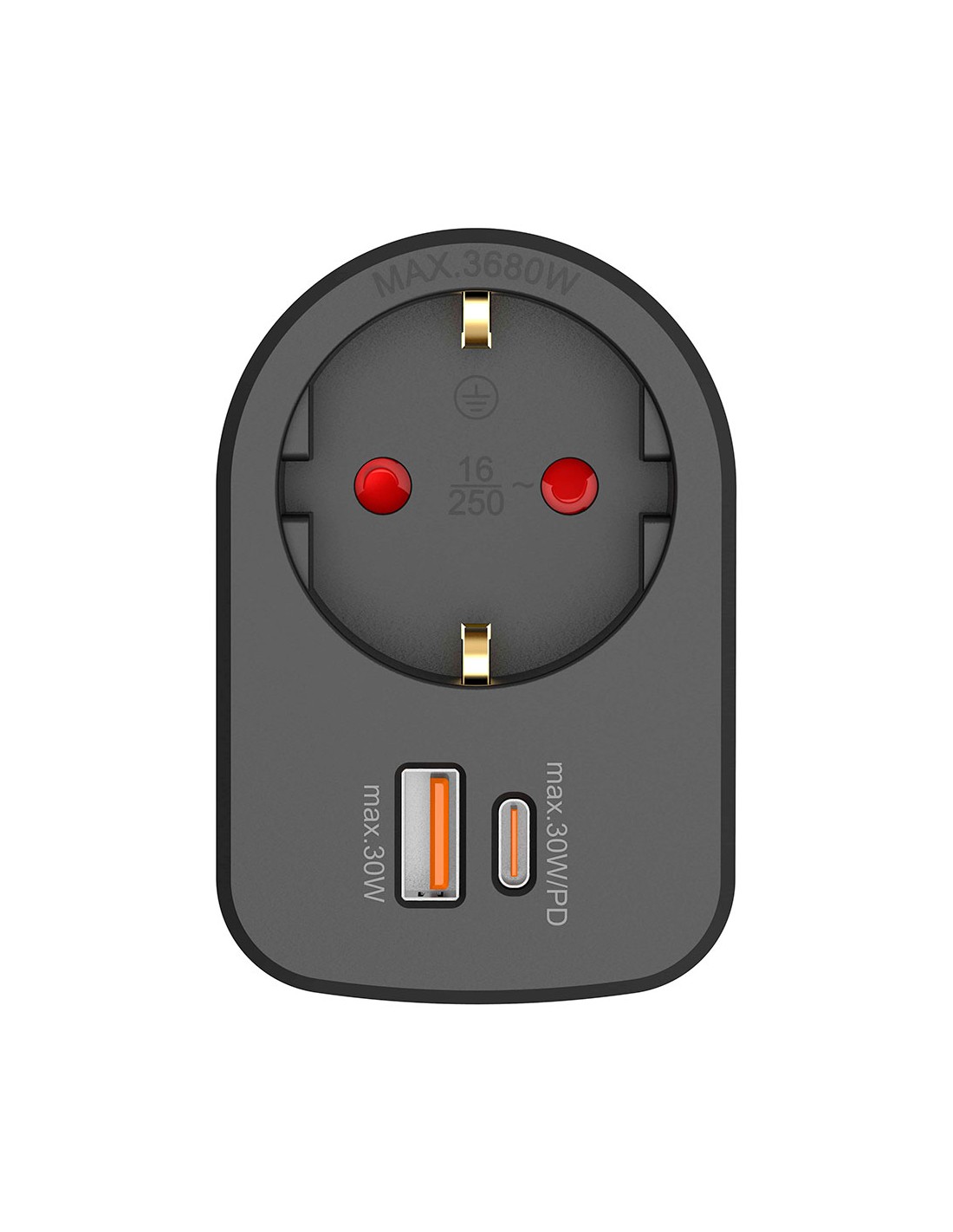 Adaptador combi 30 w usb a + c + 1 toma schuko, 16 a 250 v~, negro