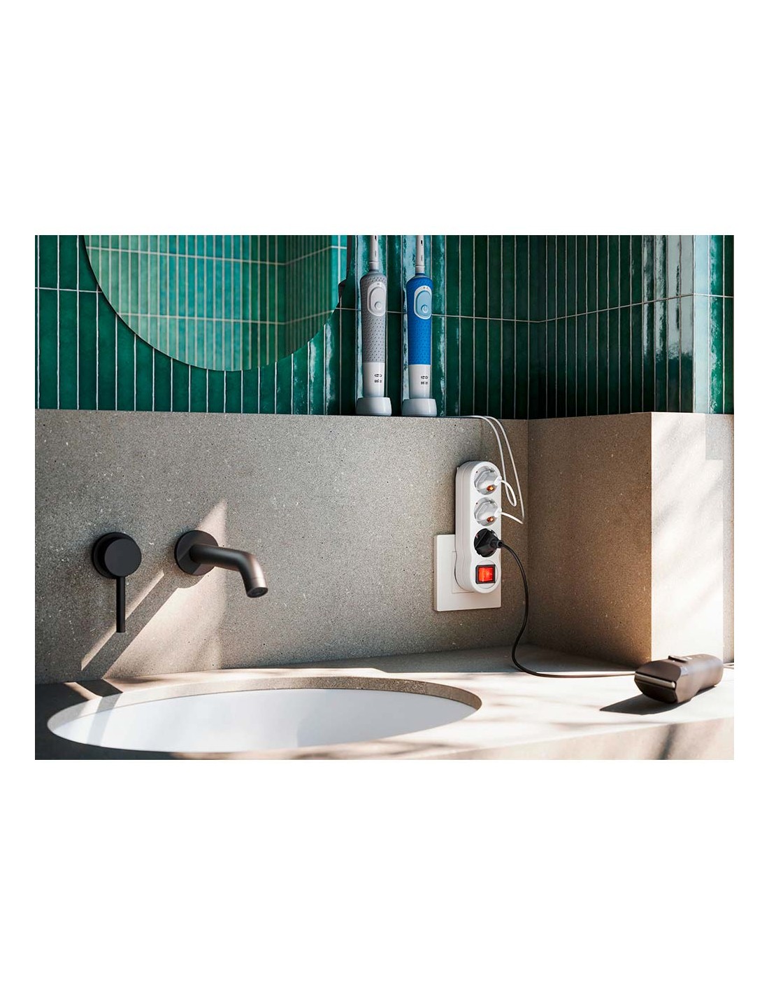 Adaptador 3 tomas schuko frontal con interruptor, 16 a 250 v~, blanco