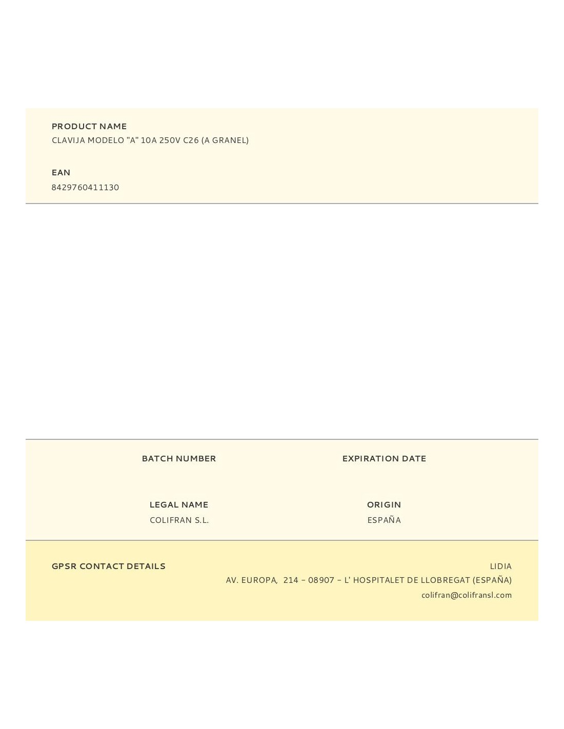 Clavija modelo "a" 10a 250v c26 (a granel)