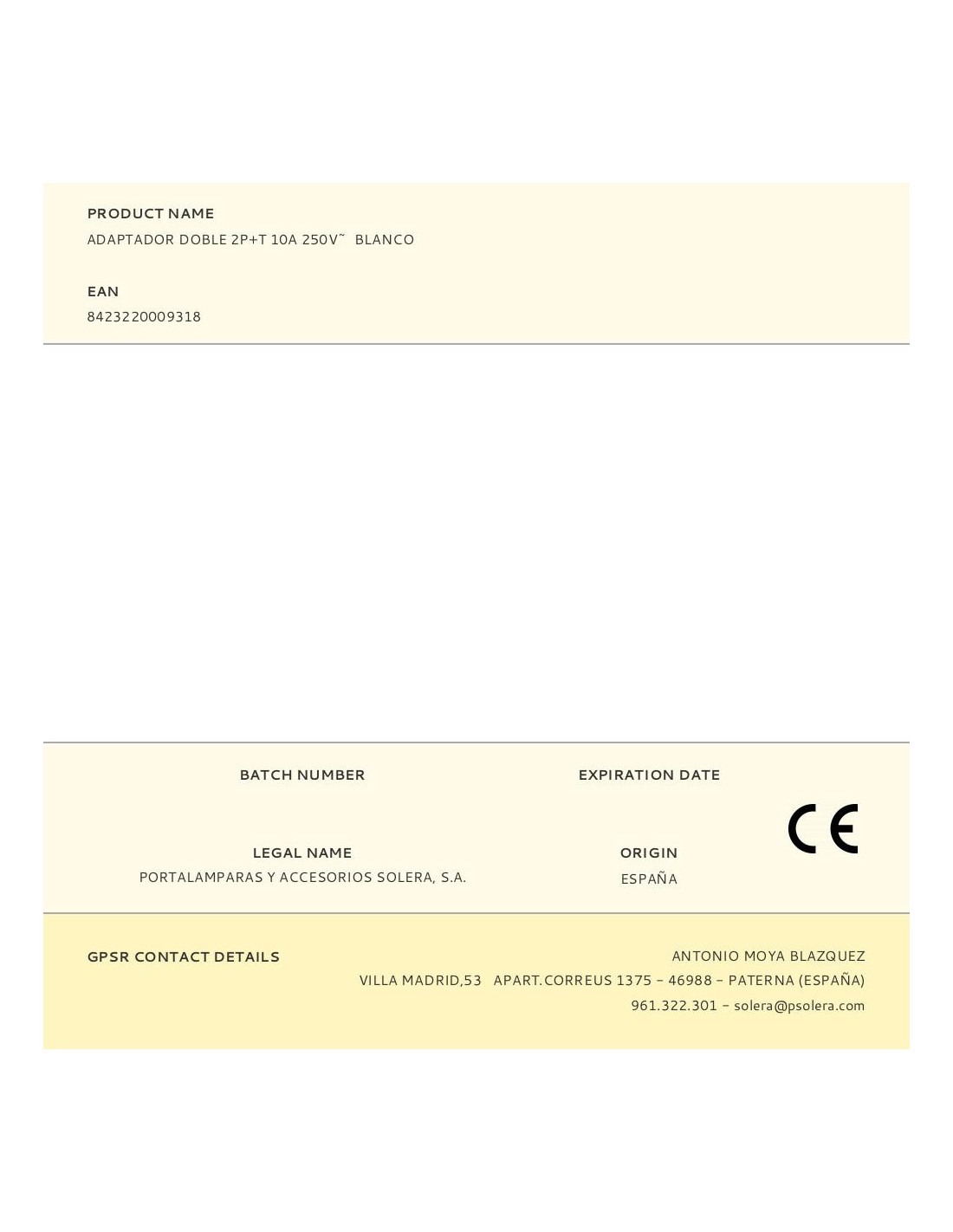 Adaptador doble 2p+t 10a 250 v~ blanco