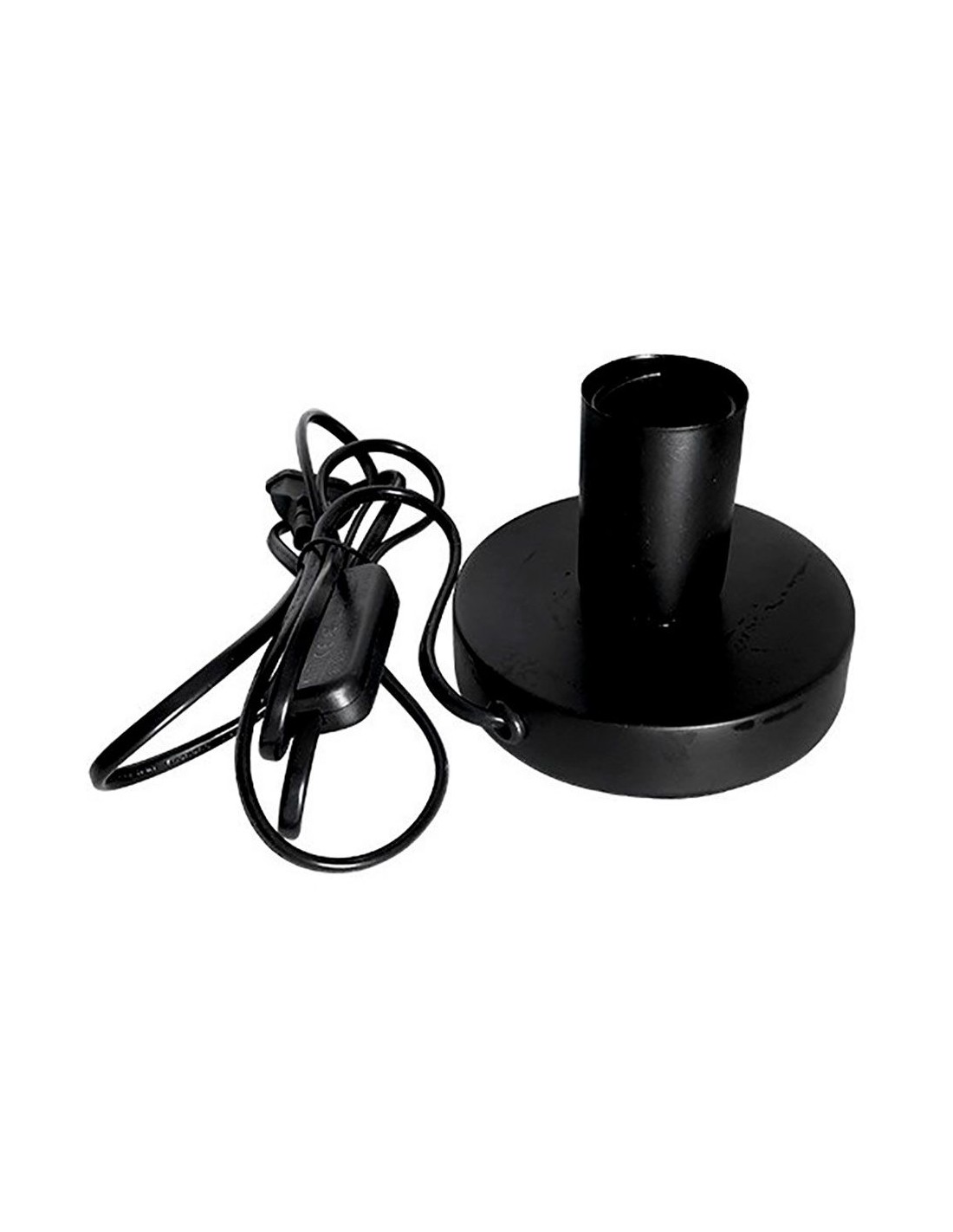 Base de mesa e27, con cable e interruptor, color negra cable 1,4 m ip20 potencia máxima 40 w 220 - 240 v ~50/60 hz ø120 x 85 mm, material: alumino y madera bombilla no incluida temperatura de uso: -10 °c a 40 °c