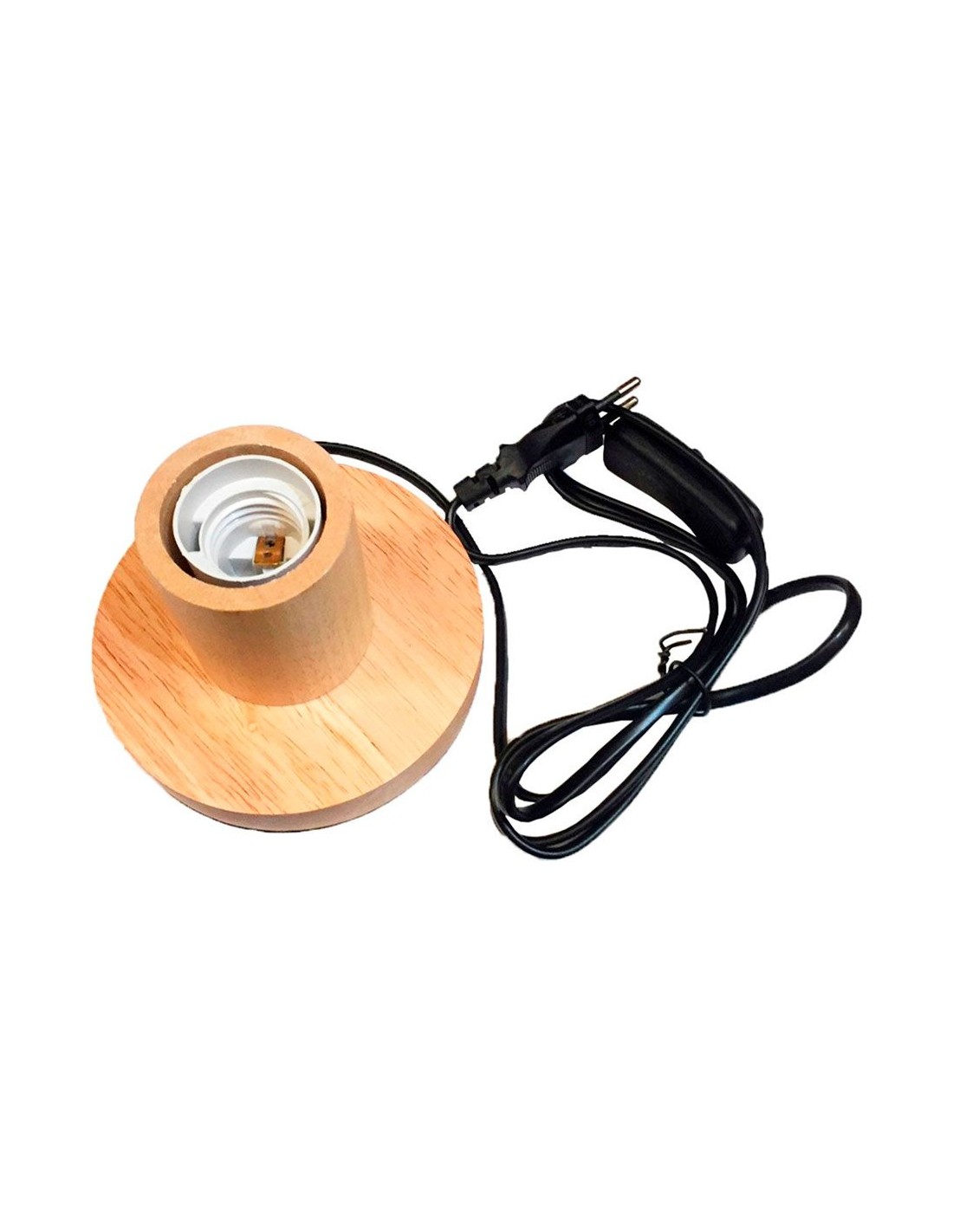Base de mesa e27, con cable e interruptor, color madera cable 1,4 m ip20 potencia máxima 40 w 220 - 240 v ~50/60 hz ø120 x 85 mm, material: alumino y madera bombilla no incluida temperatura de uso: -10 °c a 40 °c