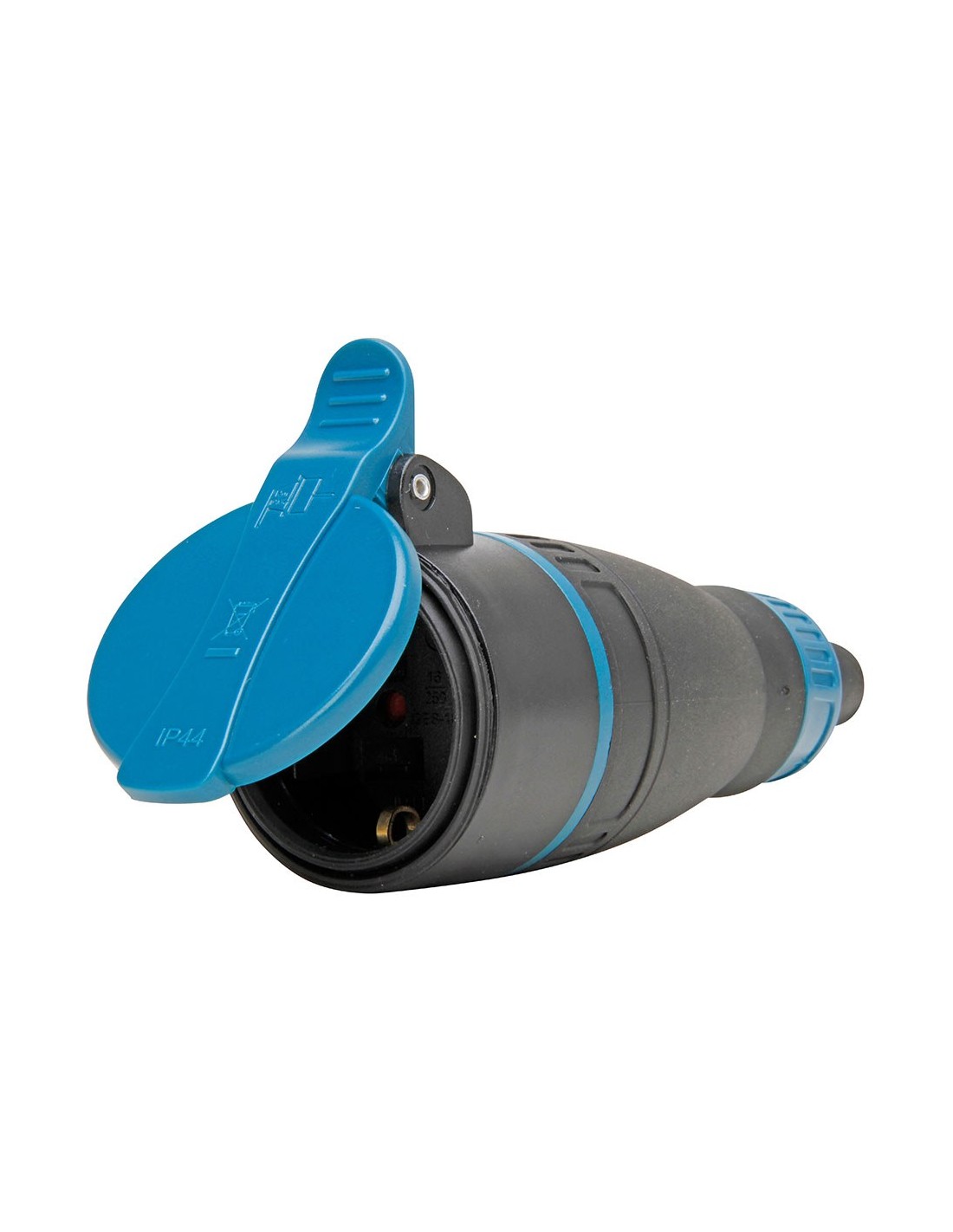 Base móvil bipolar con t/t y tapa azul 16a 250 v, ip44, negra, máx. 3 x 1,5 mm²