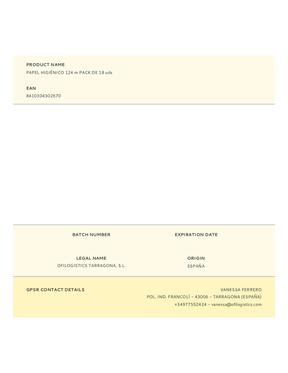 Papel higiénico industrial 2 capas con 620 servicios, 124 m. paquete de 18 rollos