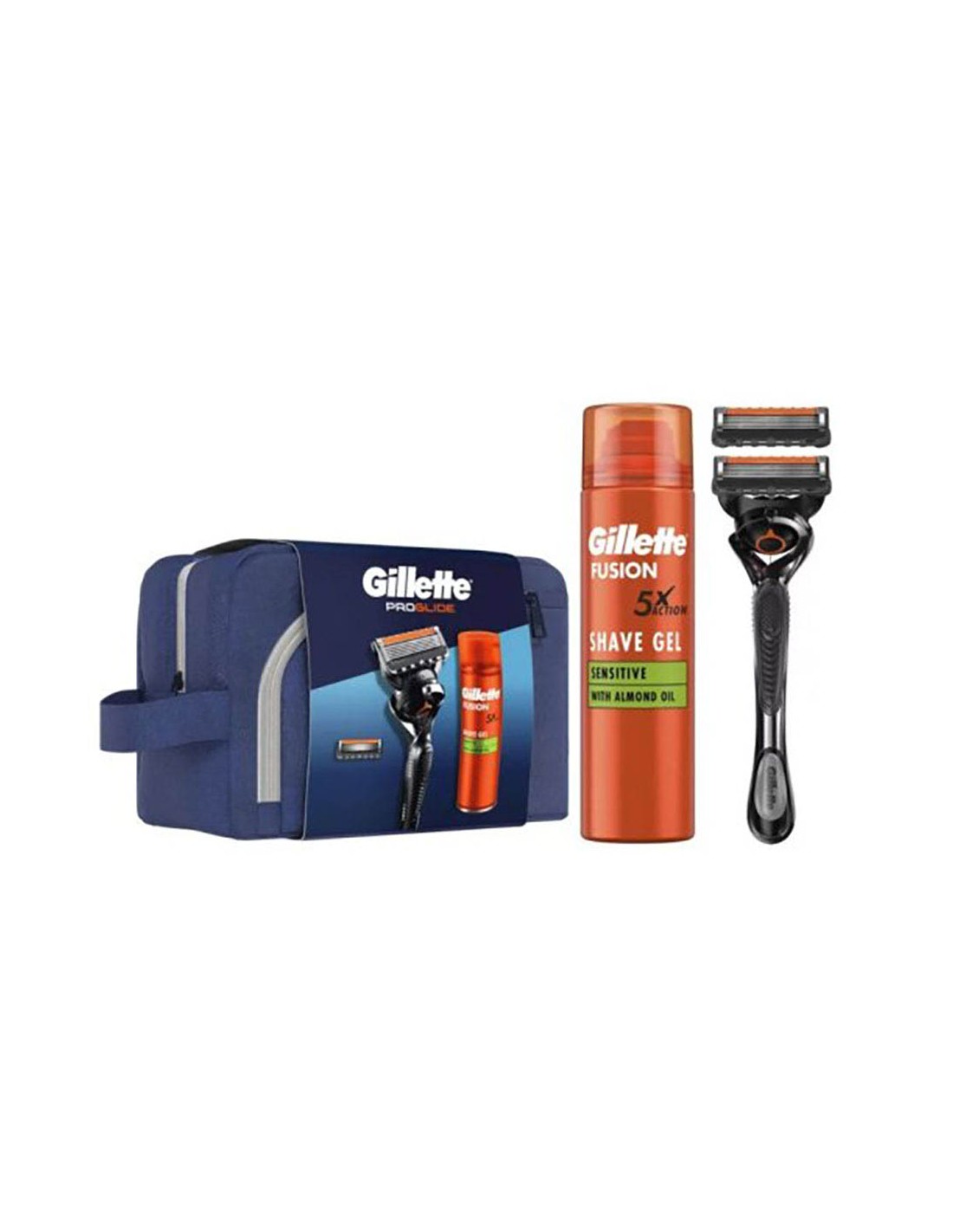 Neceser incluye una maquinilla + 2 recambios proglide y gel de afeitar fusion en tamaño viaje. perfecto para regalo o para llevar en desplazamientos. tecnología de afeitado avanzado para piel suave y protegida