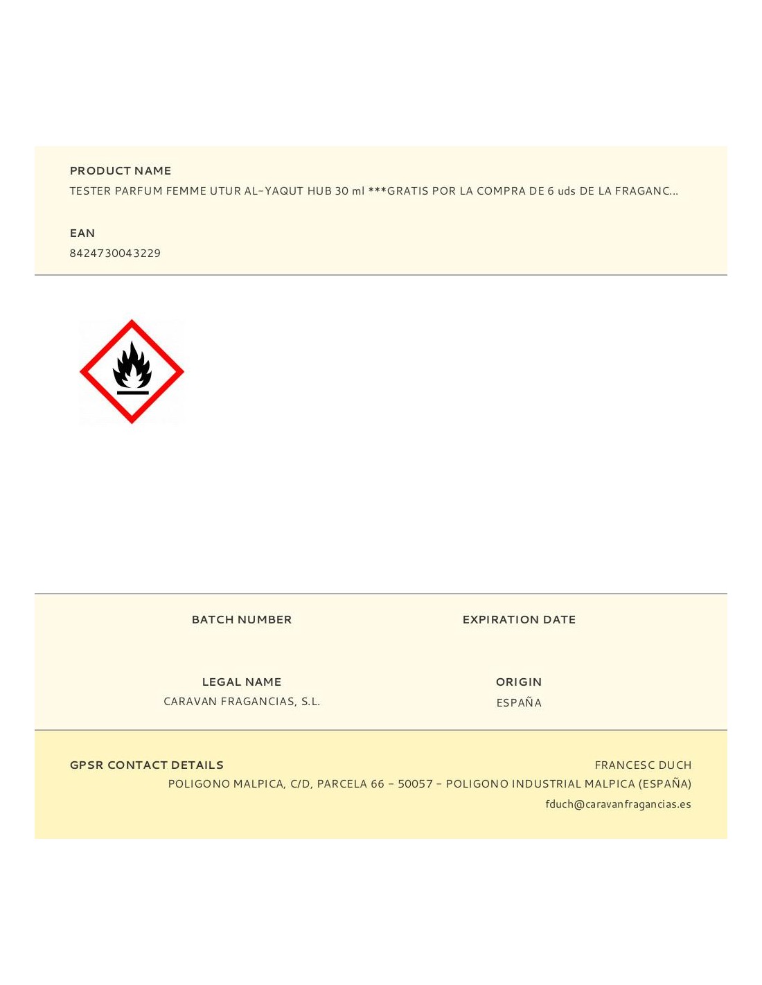 Tester parfum femme utur al-yaqut hub 30 ml ***gratis por la compra de 6 uds de la fragancia correspondiente al tester***