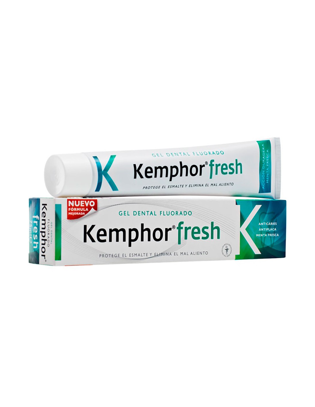 Dentífrico gel fluorado, 75 ml. proporciona un cuidado completo de la boca, dientes y encías, protege el esmalte, previene la caries y mantiene el aliento fresco