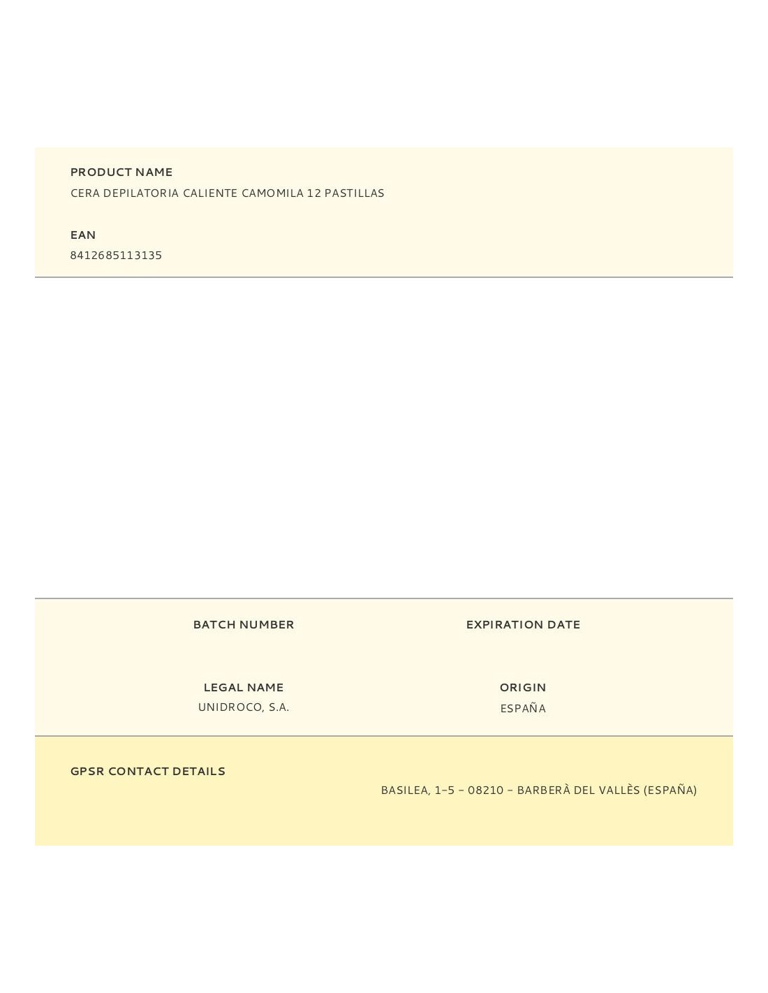 Cera depilatoria en discos, con ingredientes de origen natural a base de resinas, camomila, contiene espátula, usar sin bandas, 12 pastillas