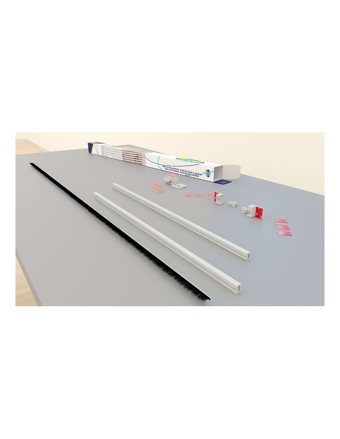 Mantiene las persianas limpias trabajando cada vez que se sube o se baja. es compatible con persianas enrollables de accionamiento manual o motorizado. es de fácil y rápida instalación, tarea que se realiza desde el interior de la vivienda sin riesgos. el kit incluye todo lo necesario para su instalación en ventanas de aluminio o pvc con marco exterior visto: 2 soportes laterales para instalación directa en pvc, suplementos para la instalación de dichos soportes laterales en aluminio, soporte central y suplementos, 2 barras de 75 cm, 1 cepillo de 150 cm. además, mejora la eficiencia energética y evita la entrada de insectos y murciélagos en el tambor de la persiana