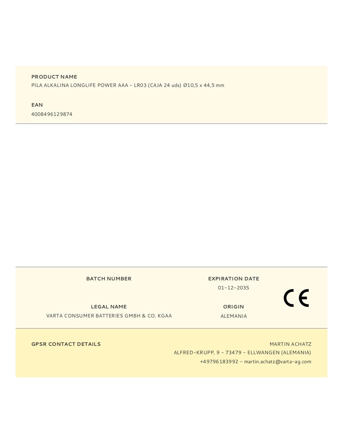 Pila alkalina longlife power aaa - lr03 (caja 24 unid.) ø10,5 x 44,5 mm