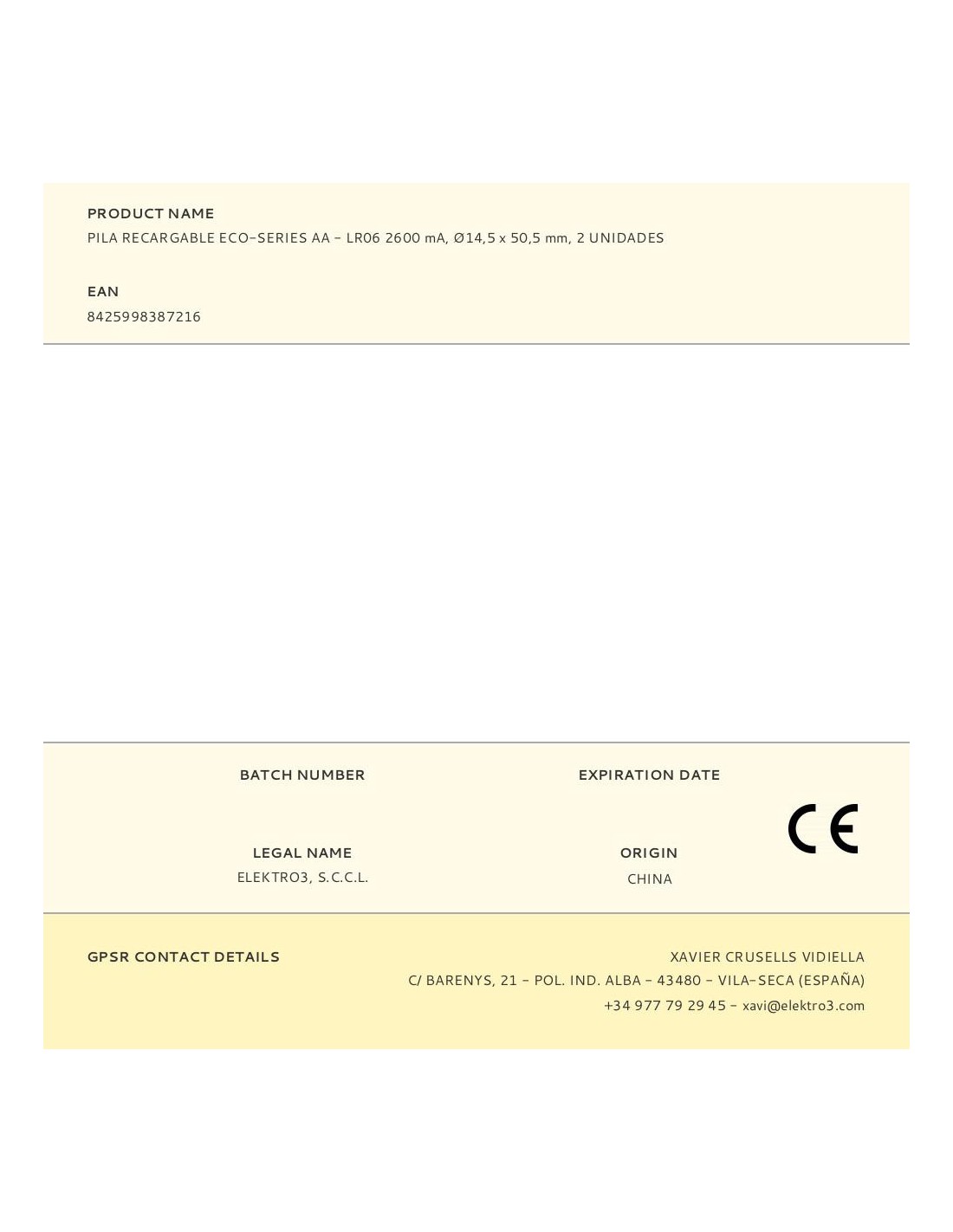 Pila recargable eco-series aa - hr6 2600 ma 1,2 v ø14,5 x 50,5 mm, 2 uds