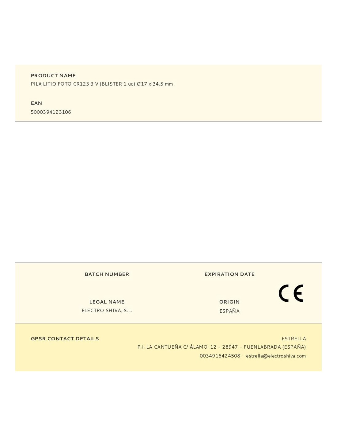 Pila litio cr123 3 v ø17 x 34,5 mm blister
