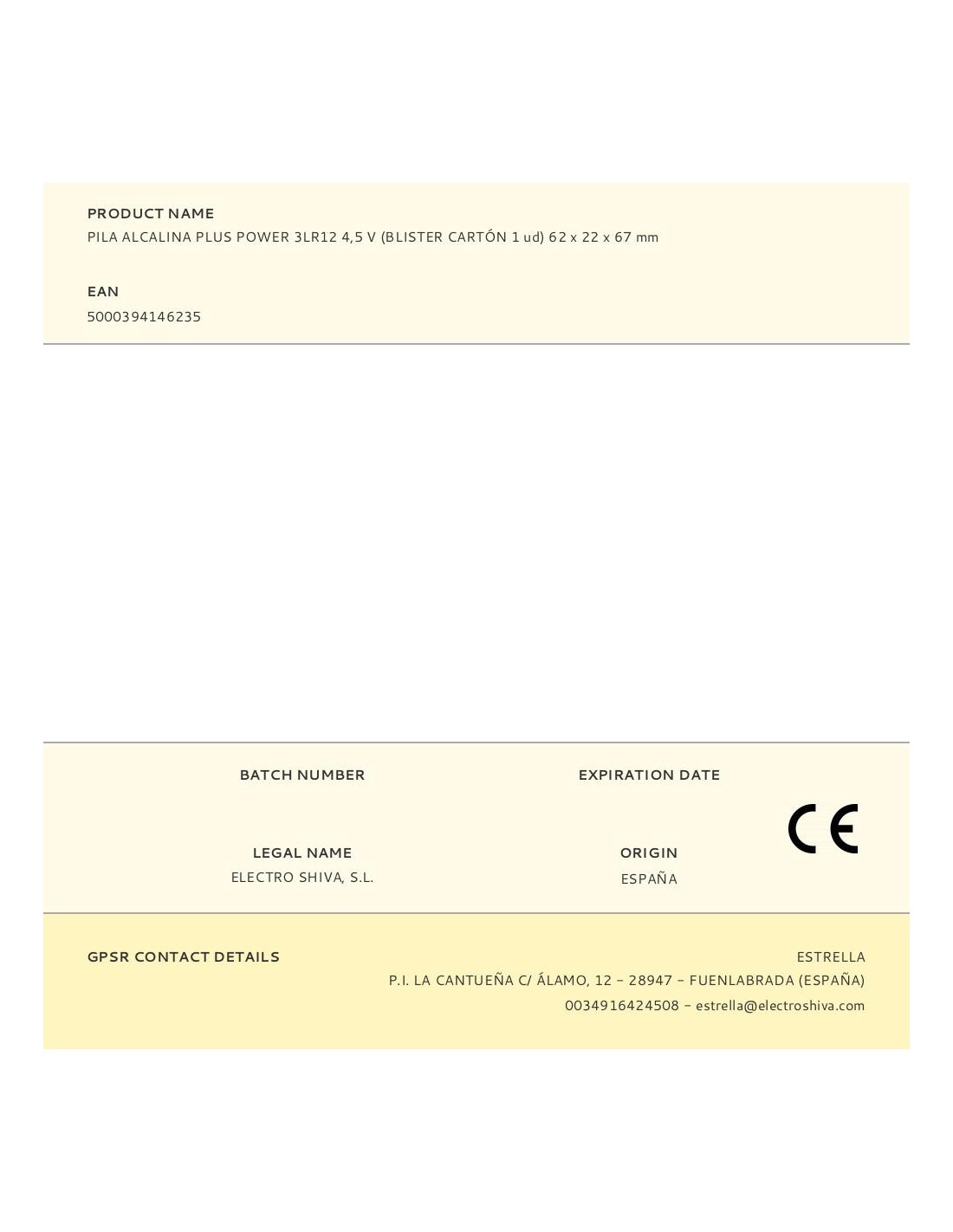 Pila petaca alcalina plus power 3lr12 4,5 v 62 x 22 x 67 mm blister