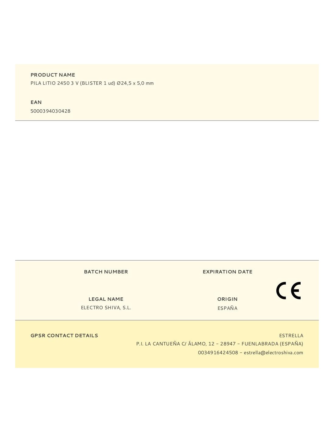 Micro pila de botón litio cr2450 3 v ø24,5 x 5,0 mm blister