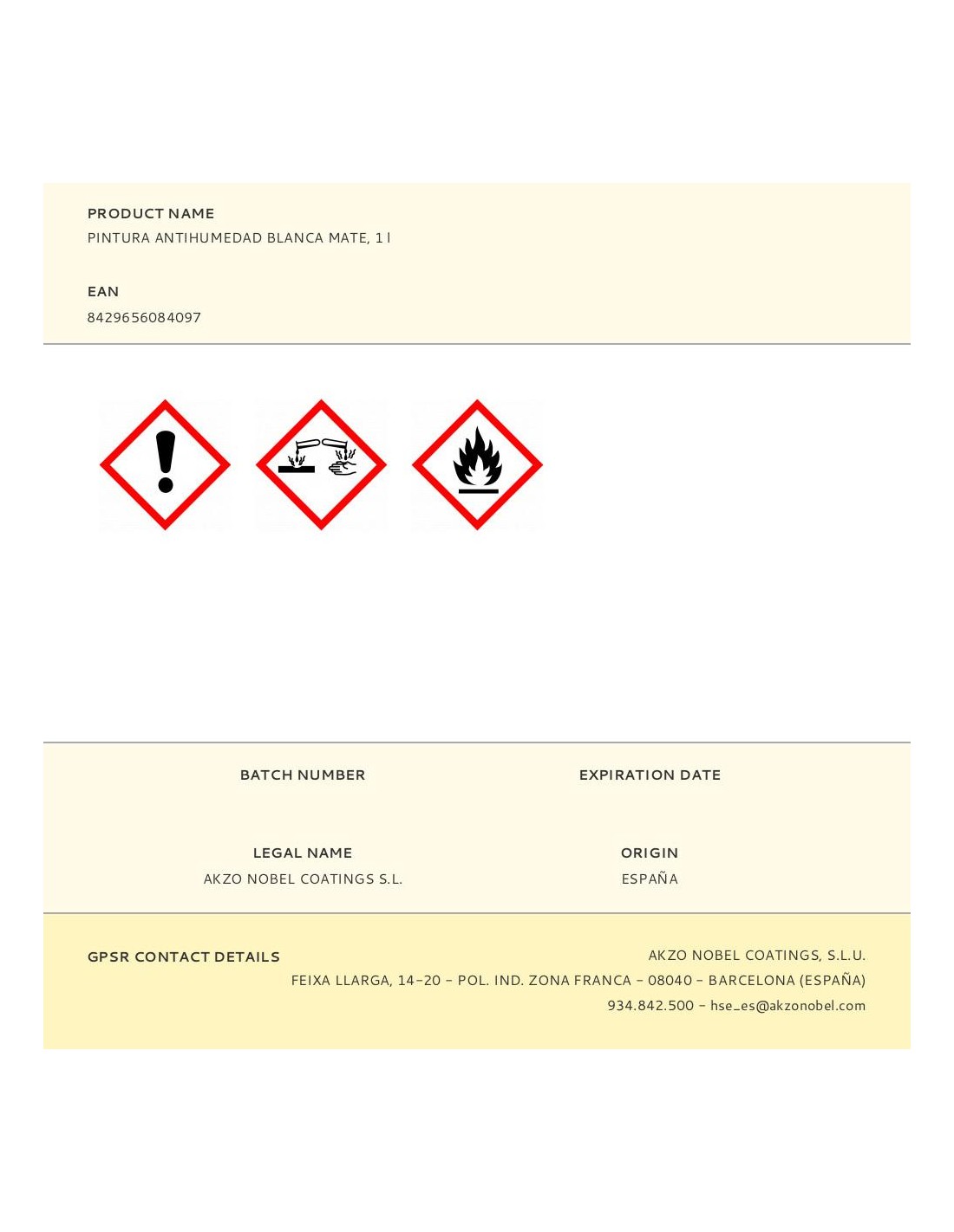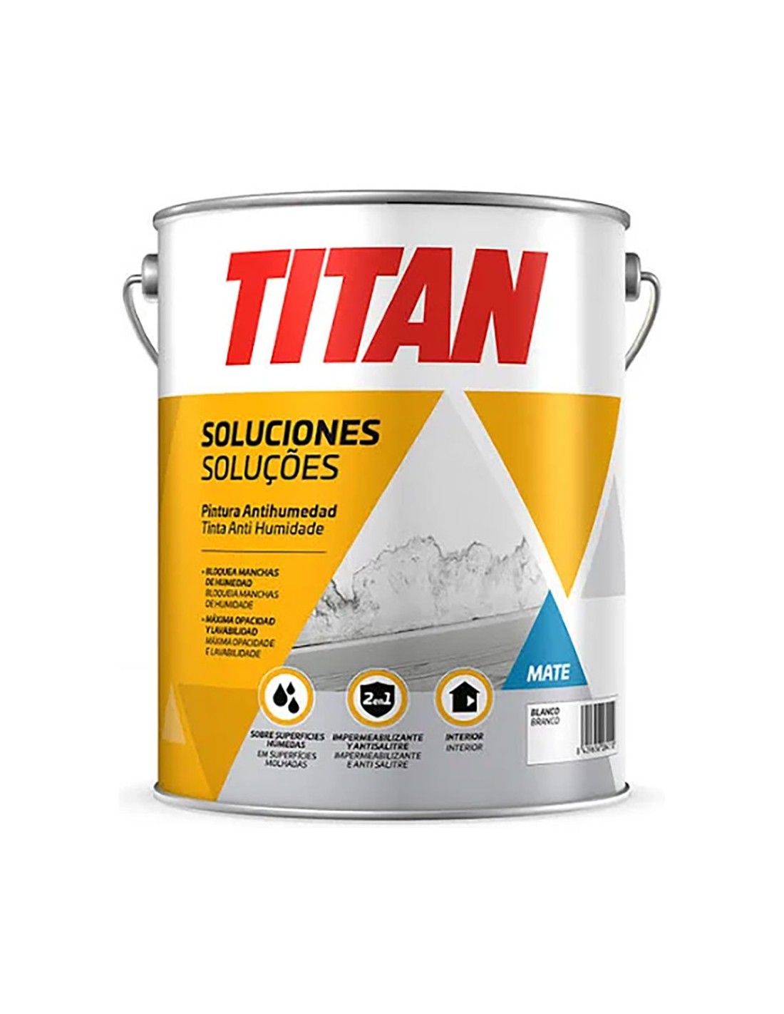 Pintura blanca mate de interior, para paredes y techos con problemas de humedad y salitre, especialmente indicada para baños, cocinas, sótanos y garajes. bloquea y tapa las manchas de humedad con una sola mano de pintura, evitando su reaparición. se puede aplicar sobre superficies ligeramente húmedas, previniendo la aparición de moho. puede repintarse con pintura plástica. secado en 4 h, repintable en 8 h, rendimiento 4-5 m²/l