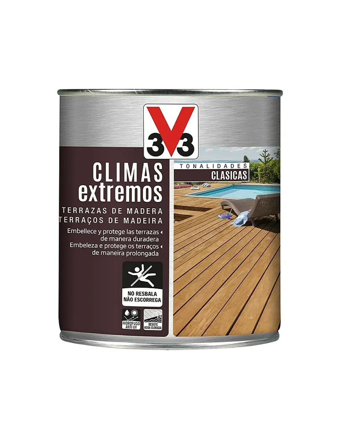Protector de terrazas de madera climas extremos teca. la fórmula contiene 88% de carbono de origen biológico sobre el carbono total. protege de las agresiones del agua, los rayos uv, las manchas y la grasa. antideslizante en terrazas y bordes de piscina. resultado perfecto en tonos de madera mate para realzar la veta y preservar el aspecto natural de la madera. aplicación: con brocha o rodillo de pelo corto 3-5 mm. dejar secar 2 h para una segunda capa y 24 h para secado completo. rendimiento: 750 ml ±9 m²