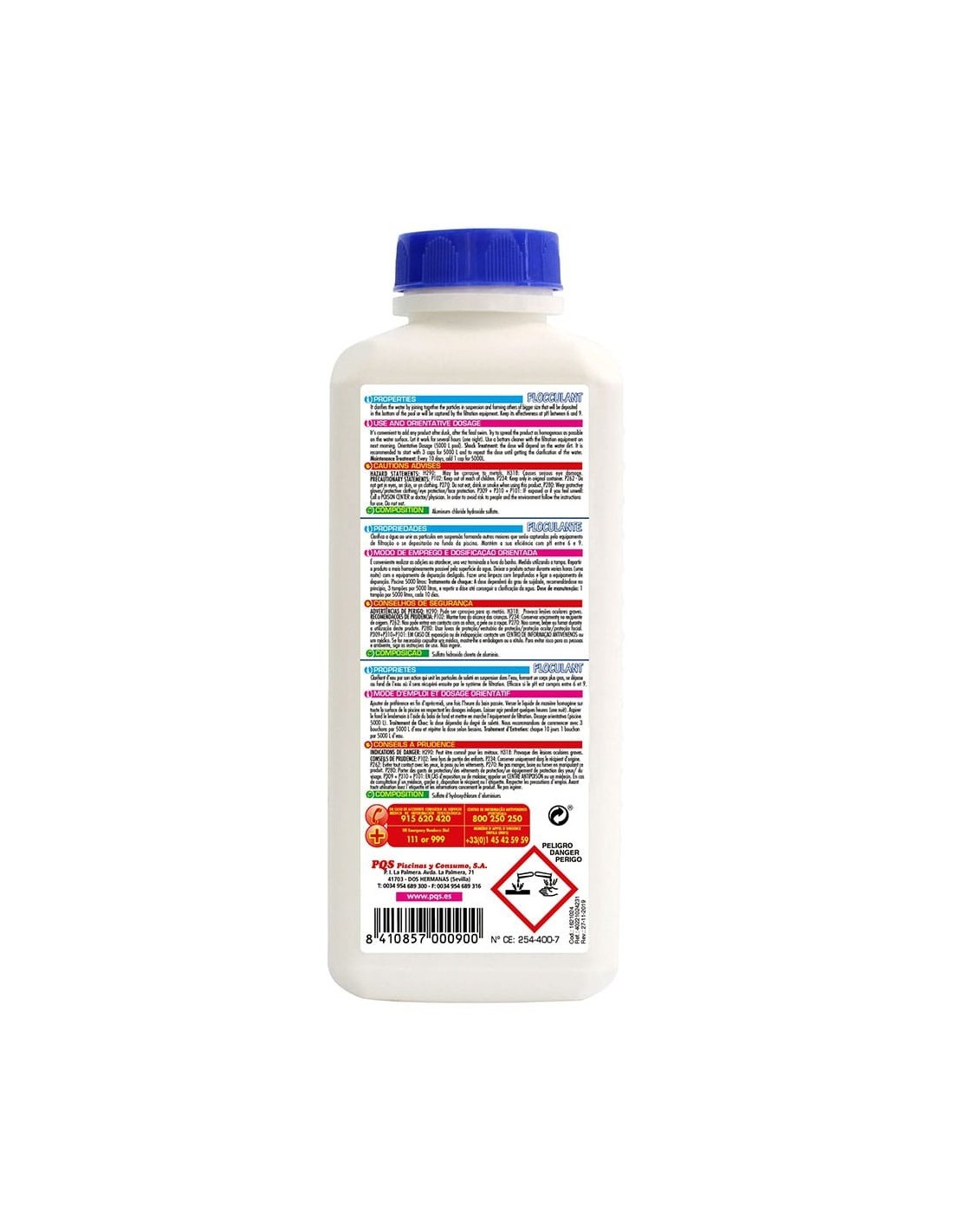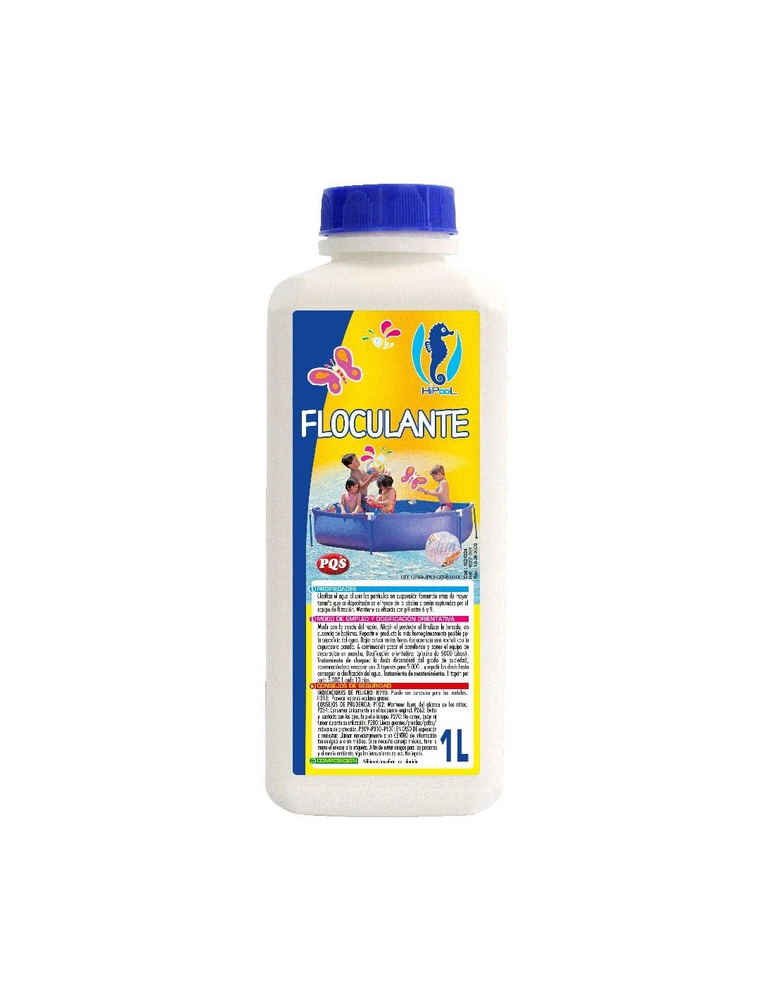 Floculante 1 l. clarifica el agua al unir las partículas en suspensión formando otras de mayor tamaño que se depositarán en el fondo de la piscina o serán capturadas por el equipo de filtración. mantiene su eficacia con ph entre 6 y 9