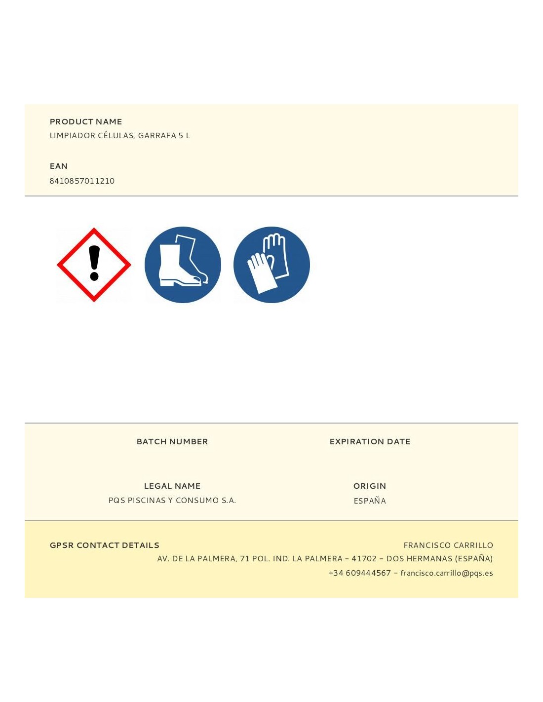 Limpiador células, garrafa 5 l. líquido ácido desincrustante para la limpieza de las células de equipos de electrólisis salina. para eliminar las incrustaciones calcáreas y residuos orgánicos que se forman y acumulan en el interior