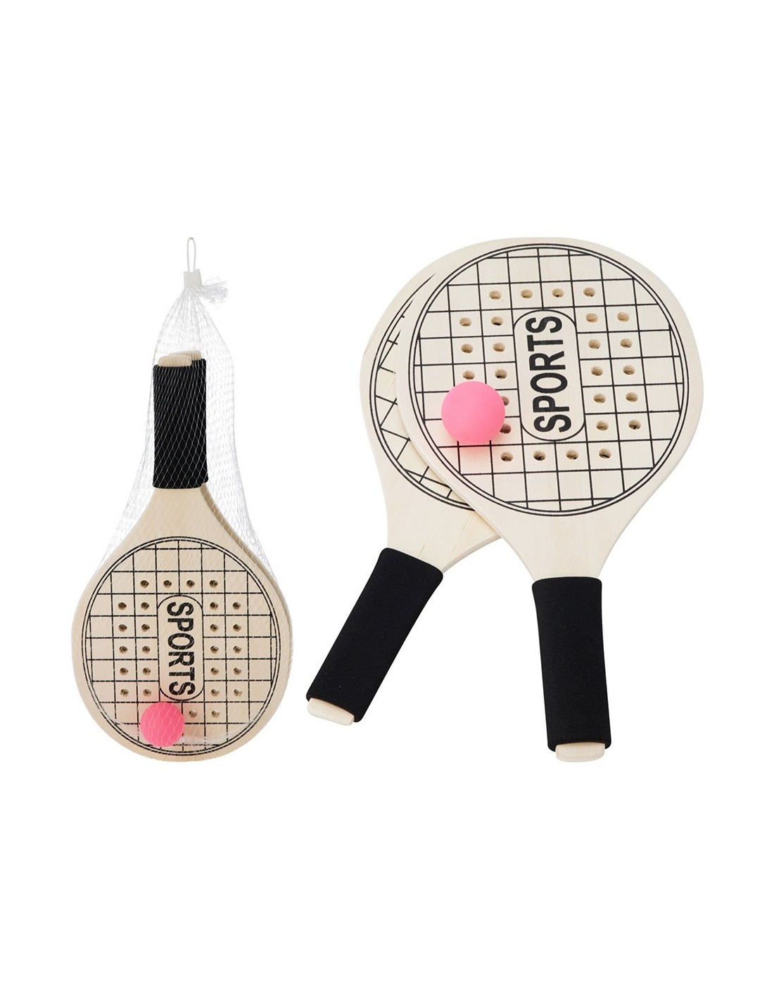 Raquetas de madera para la playa, 375 x 195 x 8 mm