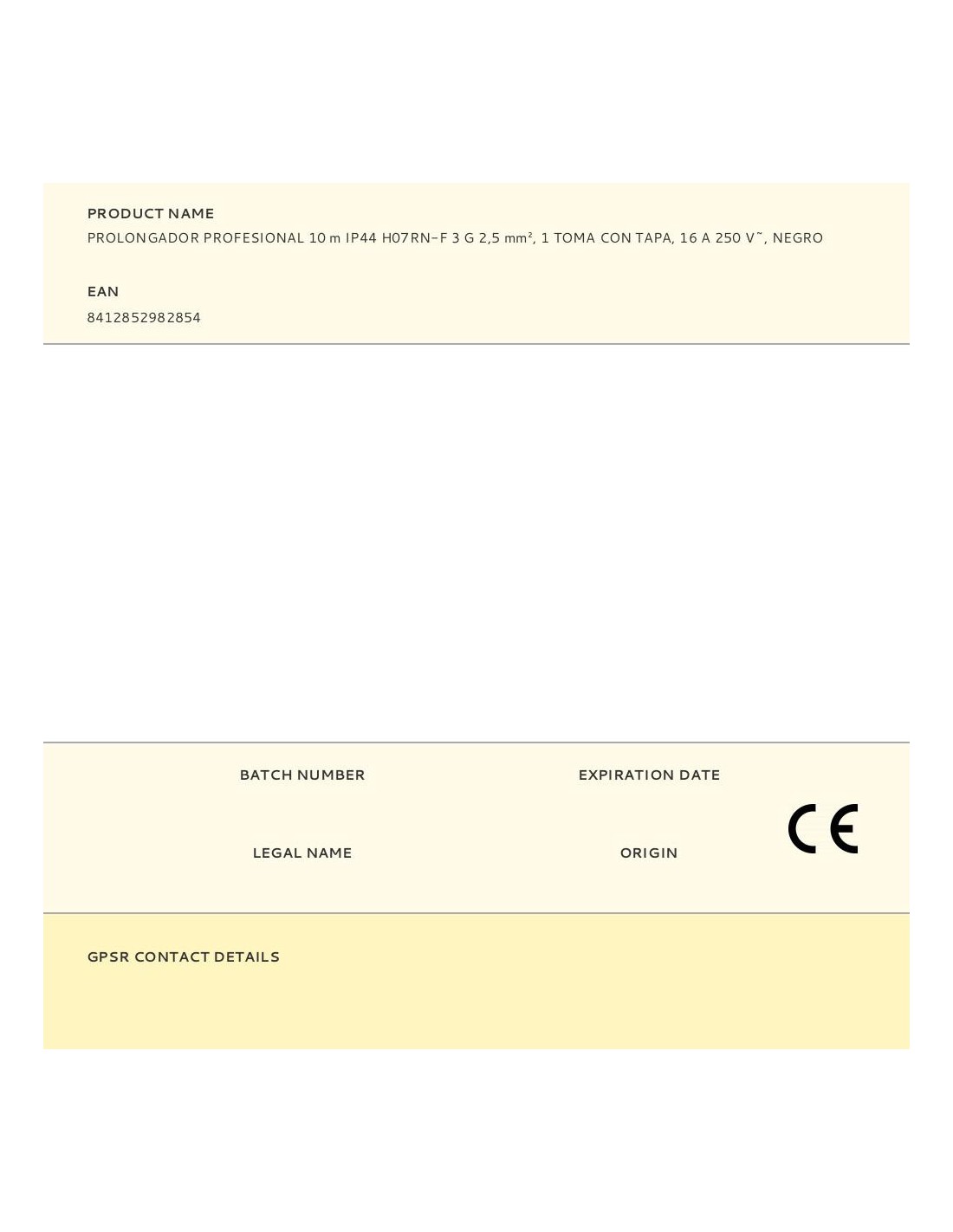 Prolongador profesional 10 m, ip44, h07rn-f 3 g 2,5 mm², 1 toma con tapa, 16 a 250 v~, negro