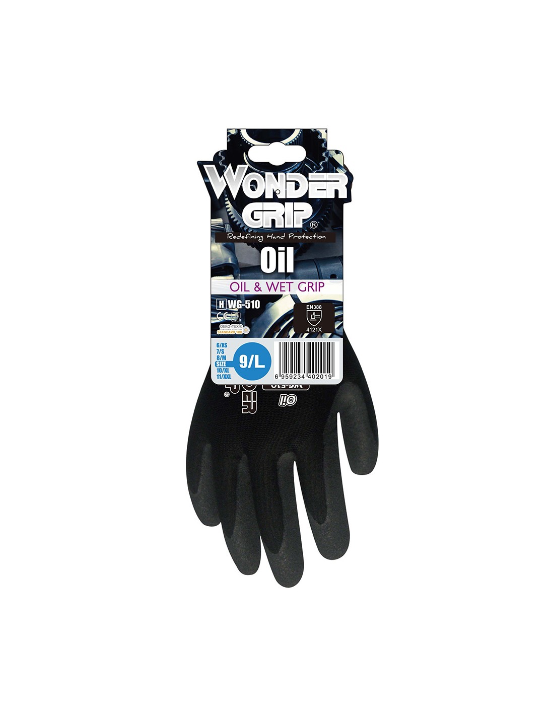 Guante wondergrip nailon y spandex, doble recubrimiento de nitrilo en palma forro elástico y suave que proporciona flexibilidad y desteridad alta resistencia a los aceites industriales y a la abrasión confeccionado para adaptarse de forma natural de la mano agarre excepcional en aplicaciones mojadas y aceitosas talla 10