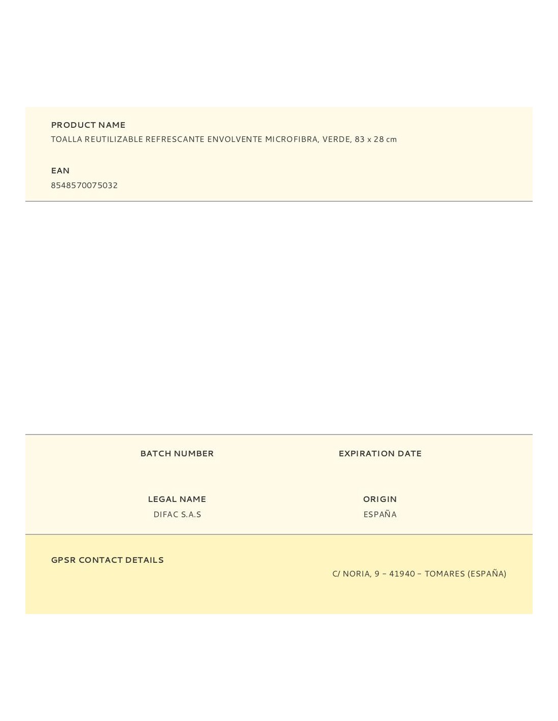 Toalla reutilizable refrescante envolvente microfibra, verde, 83 x 28 cm