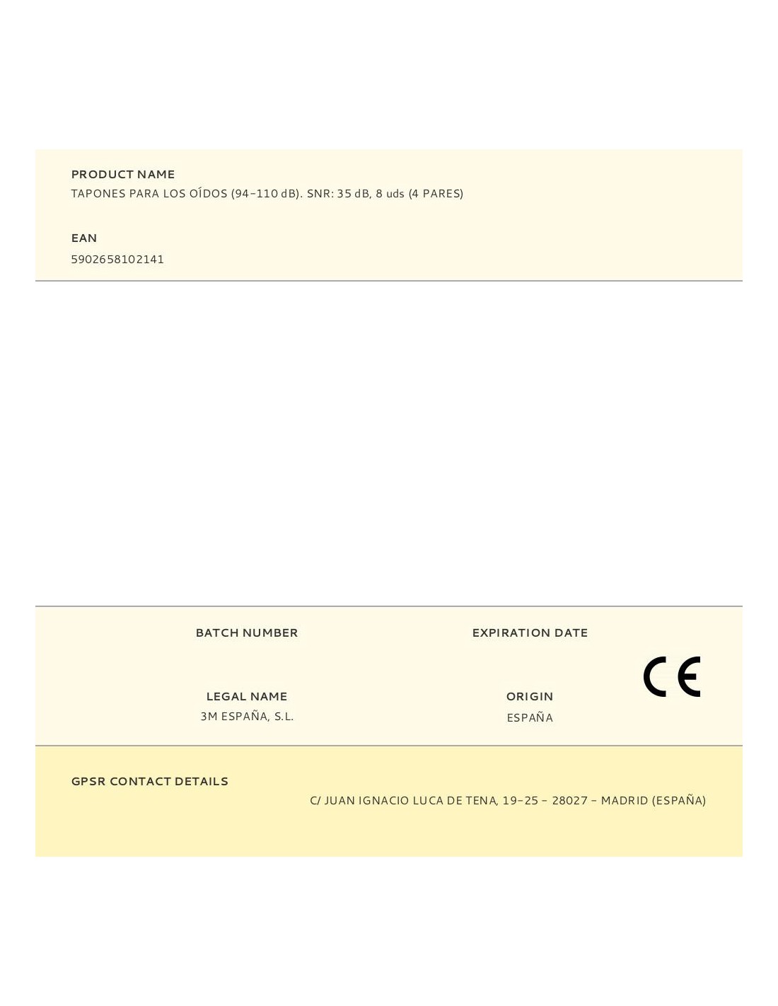 Tapones para los oídos (94-110 db). snr: 35 db, 8 uds (4 pares)