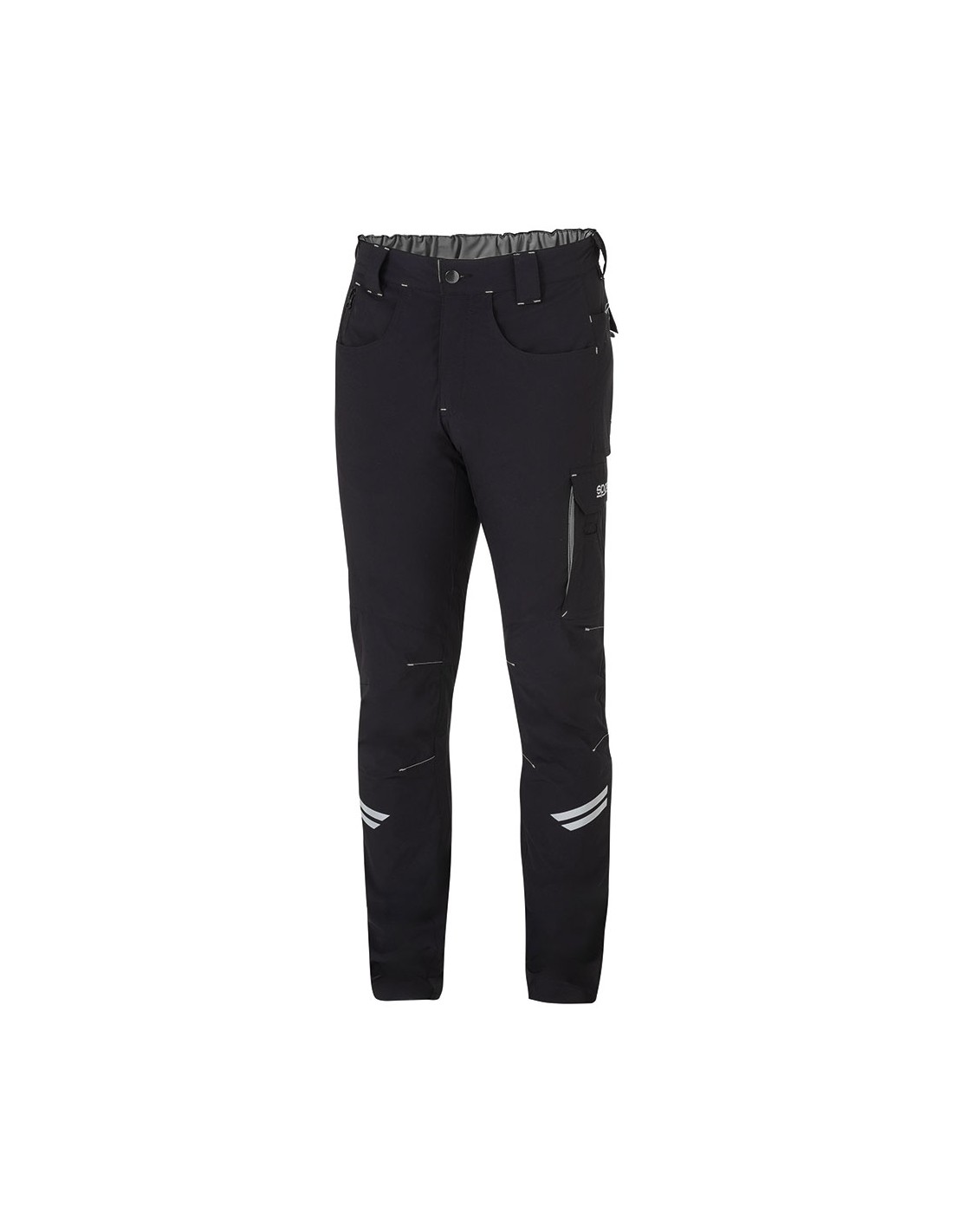 Pantalón ligero técnico negro/gris kansas t1 - s pantalón elástico técnico con multibolsillos, bandas reflectantes y refuerzos antiabrasión en rodillas, 90% nylon-10% spandex
