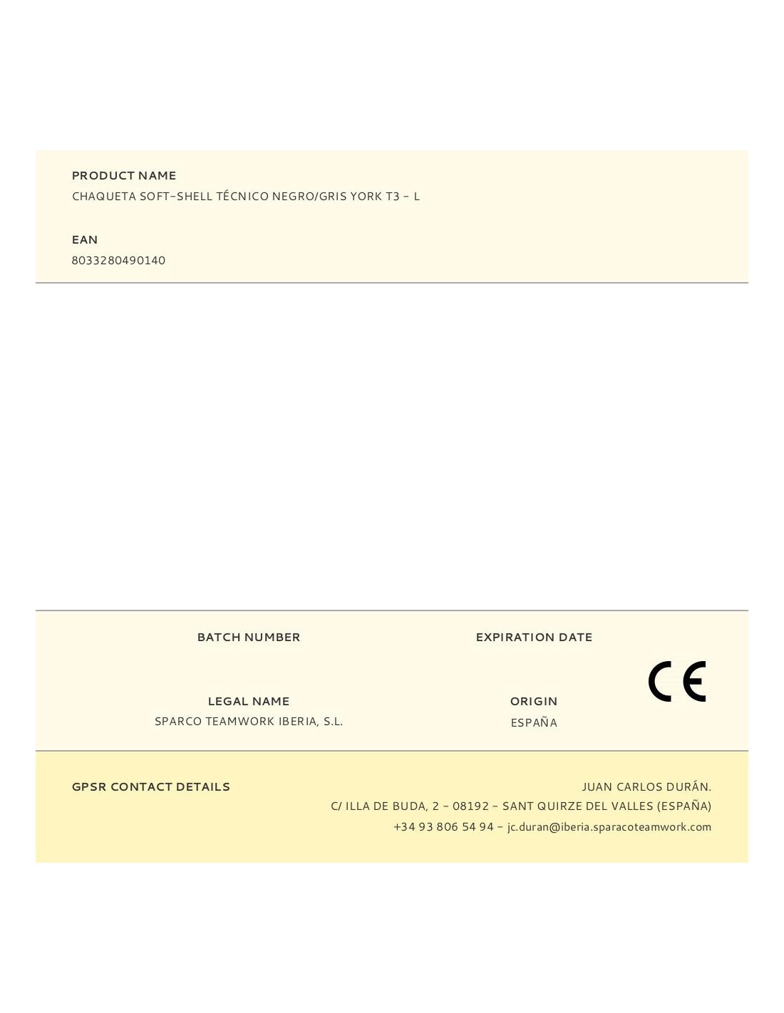 Chaqueta técnica softshell tech, york, negra/gris, t3 - l inserciones con refuerzos en zonas de tensión, elementos reflectantes, cremalleras estancas, multibolsillos, capucha desmontable, interior con forro polar 100% poliéster, material exterior: 1- 93% poliéster 7% elastano, 2- 90% nylon 10% elastano