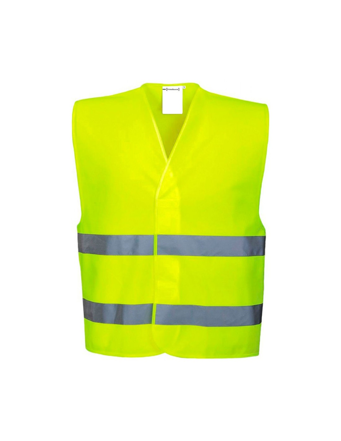 Chaleco de alta visibilidad y 2 bandas retrorreflectantes horizontales en contorno tórax, tejido de poliéster amarillo fluor con cierre de gancho y bucle. talla l