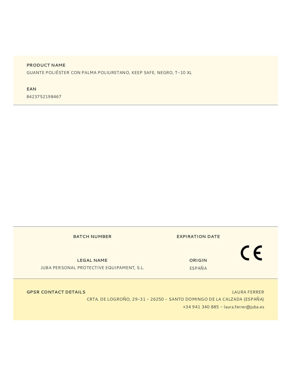 Guante keep safe de poliéster con palma pu negro. buen tacto y transpirable, flexible. recomendados para: bricolaje. trabajos en el campo, almacenamiento y reposición. manipulación, montaje y ensamblaje de piezas en entornos secos, ligeramente húmedos o engrasados. t-10 xl