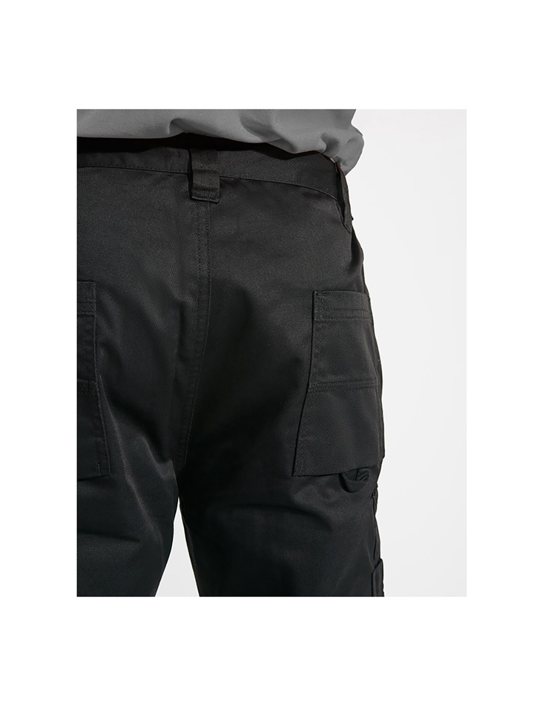 Pantalón laboral protect negro t-40, 38 x 106,5 cm, recto, sin pinzas, 65% poliéster 35% algodón, 245 g/m², cinturilla ajustable con gomas elásticas, dos bolsillos traseros, un bolsillo lateral con cremallera en el lado derecho, dos bolsillos laterales, uno con tapeta y fuelle, y otro con varios compartimentos cintura con colgador para llaves bolsillos interiores para protección de las rodillas trabillas en los bolsillos traseros y laterales