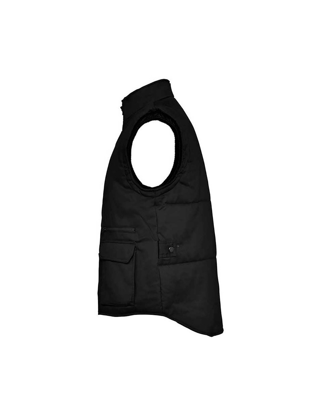 Chaleco laboral almanzor negro t-m, 58 x 66-72 cm, multi bolsillo exterior: 80% poliéster 20% algodón, 200 g/m² interior: 100% poliéster acolchado 170 g/m² cremallera central con trabilla y velcro, bolsillo exterior para móvil lado derecho dos bolsillos frontales con fuelle y aberturas laterales, dos depósitos para bolígrafos, bolsillo con cremallera, bolsillo interior con velcro, cortavientos en las bocamangas, bajo posterior con faldón, tapetas ajustables en laterales con botones a presión