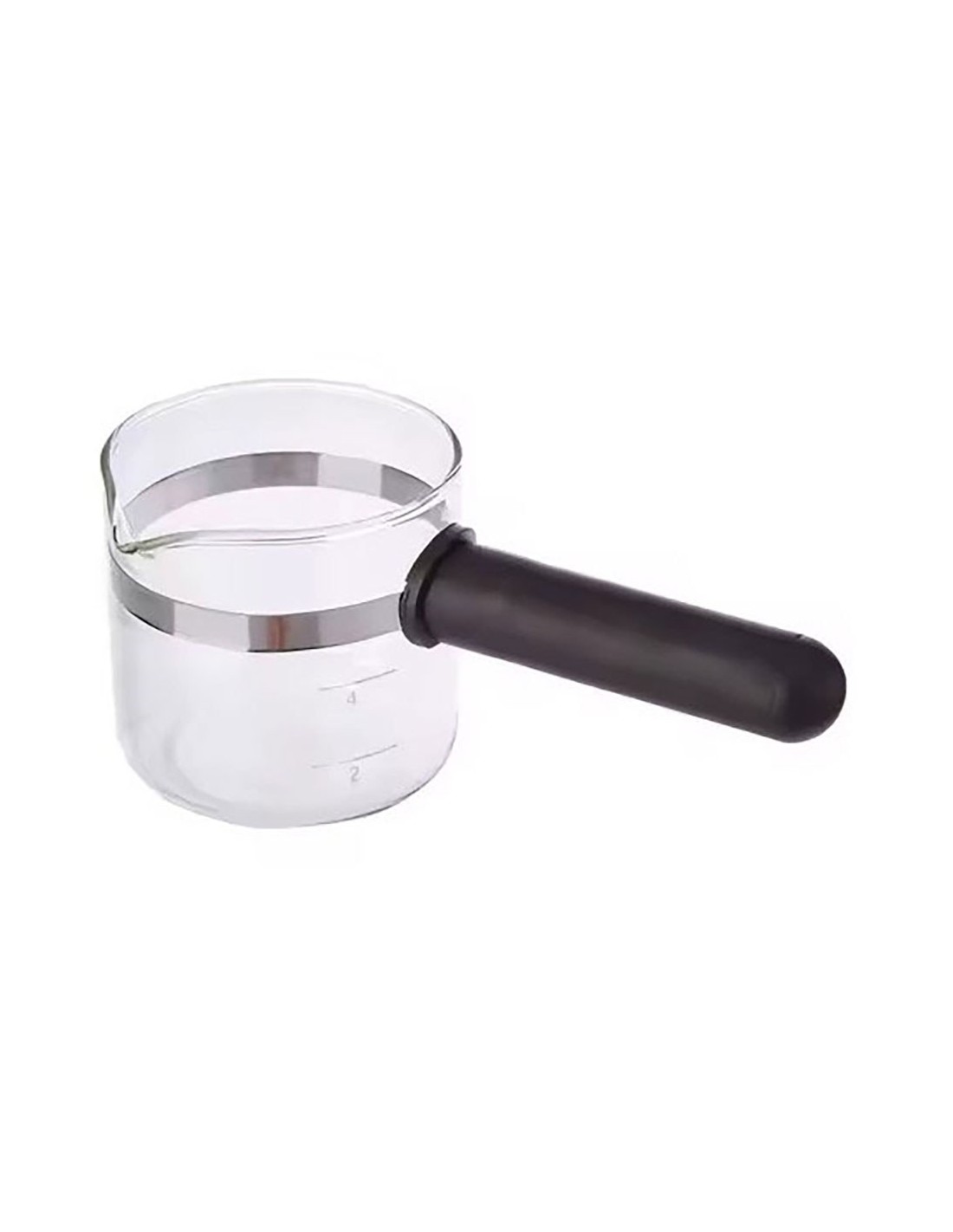 Jarra de vidrio para cafetera espresso con capacidad de 2 - 4 tazas. para cualquier cafetera de goteo sin válvula antigoteo. medidas: ø8,6 cm, 8,4 cm de altura y 10 cm el mango. no incluye tapadera