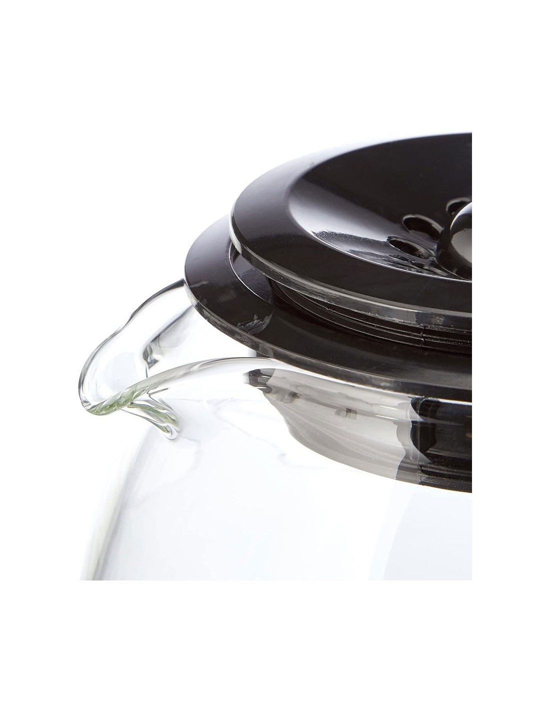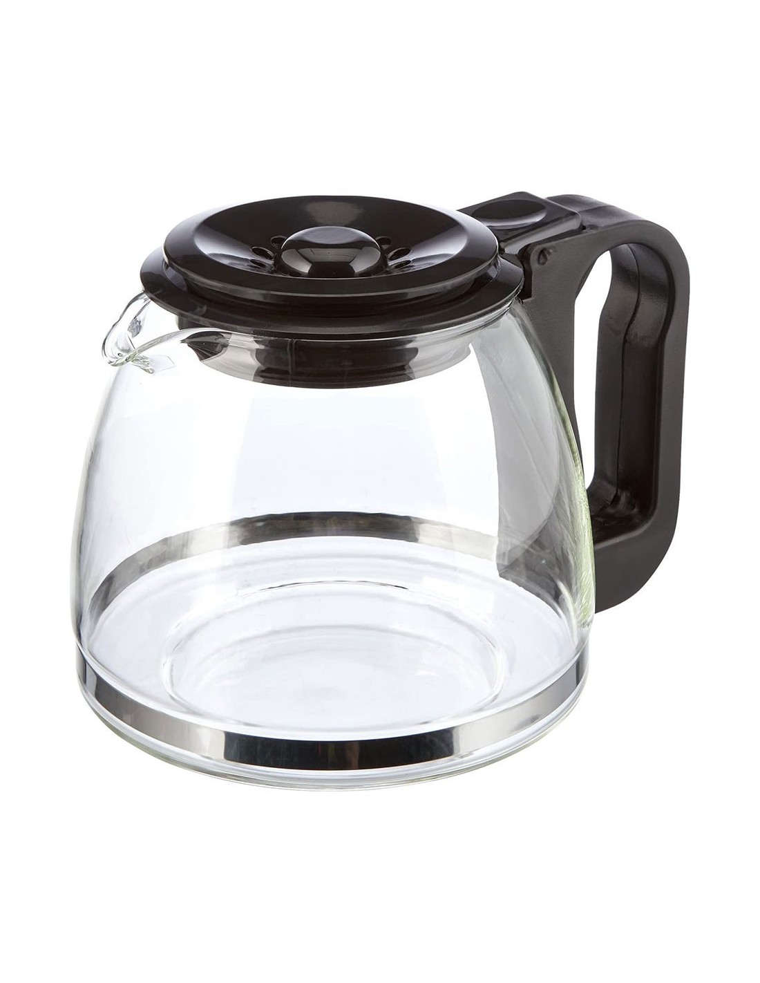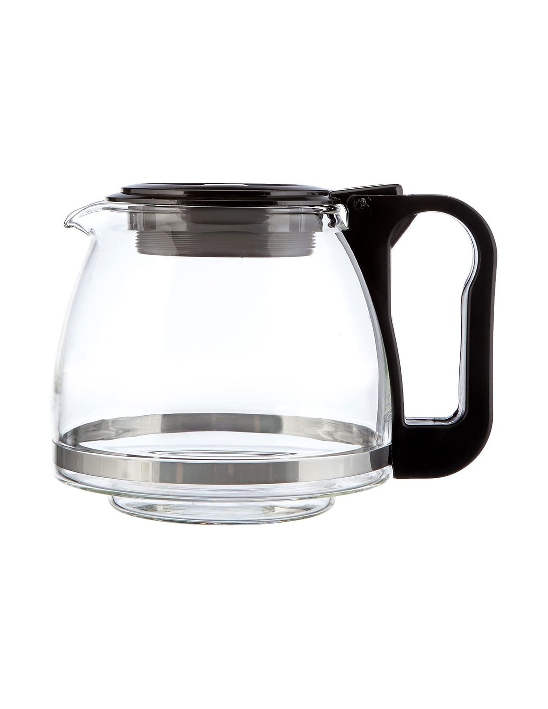 Jarra cónica universal de 1 l, para cafetera de goteo, fabricada en vidrio. altura regulable entre 13,5 y 15 cm para adaptarse a distintos modelos. base de ø9 cm para el encaje con la cafetera y ø14 cm la base grande. incluye tapa antigoteo y mango ergonómico