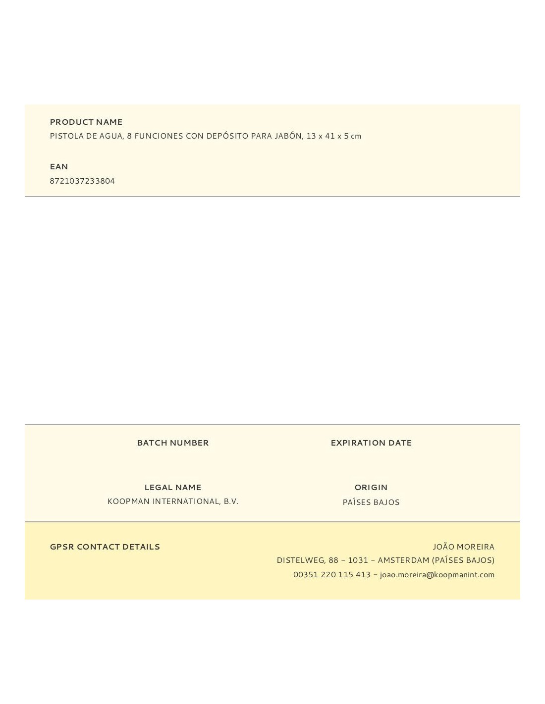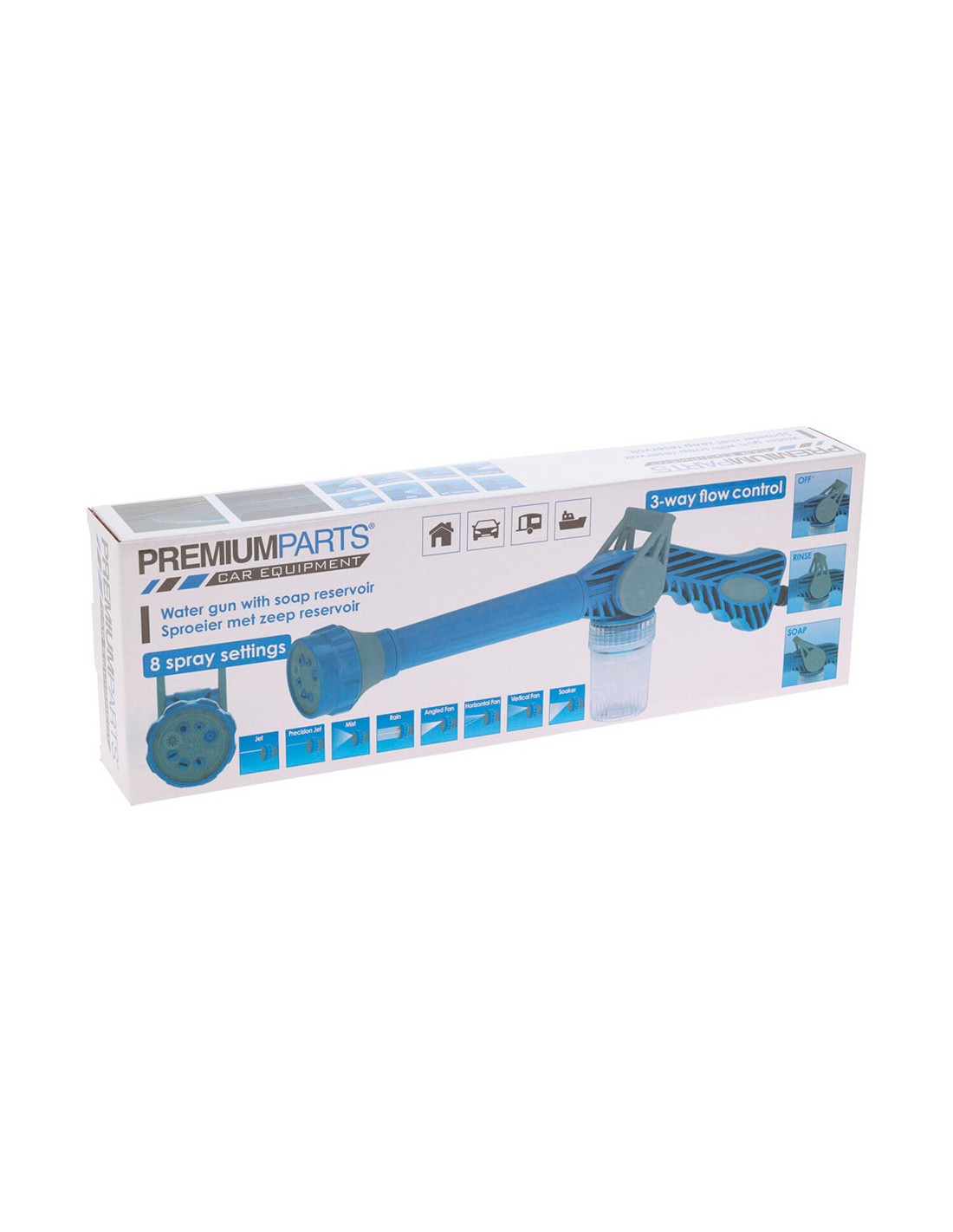 Pistola de agua, 8 funciones con depósito para jabón, 13 x 41 x 5 cm