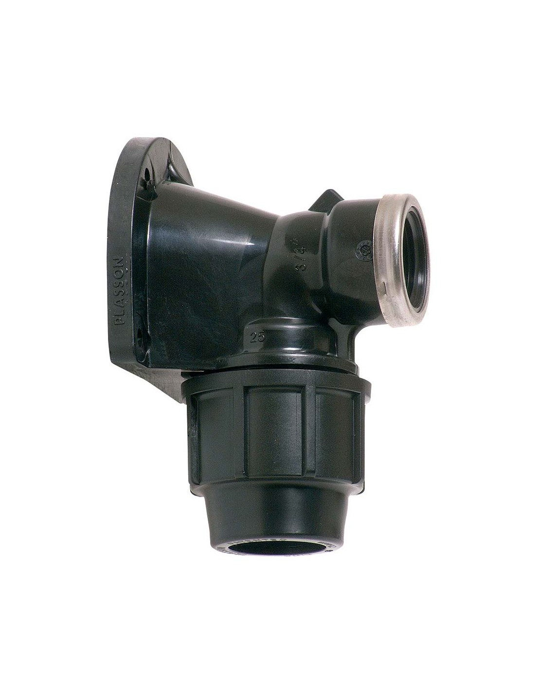 Codo mixto 90° rosca hembra mural de polipropileno 25 mm x ¾ pulg. no está recomendado para usar con agua caliente, aunque soportan las mismas temperaturas que las tuberías de polietileno. resisten temperaturas inferiores a los 0°c y a las sustancias químicas