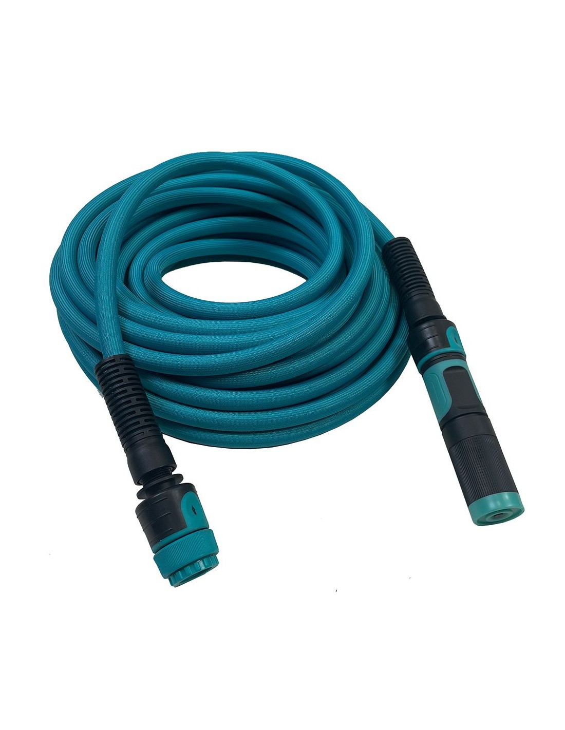 Manguera duralite 15 m, diámetro de 12 mm, exterior hecho de poliéster d1000 e interior de pvc-nbr, fabricada para ofrecer durabilidad y flexibilidad. incluye lanza con 3 tipos de riego, adaptador a grifo de ½ y ¾ pulg y dos conectores rápidos. ideal para un riego preciso y eficiente en jardín y terraza
