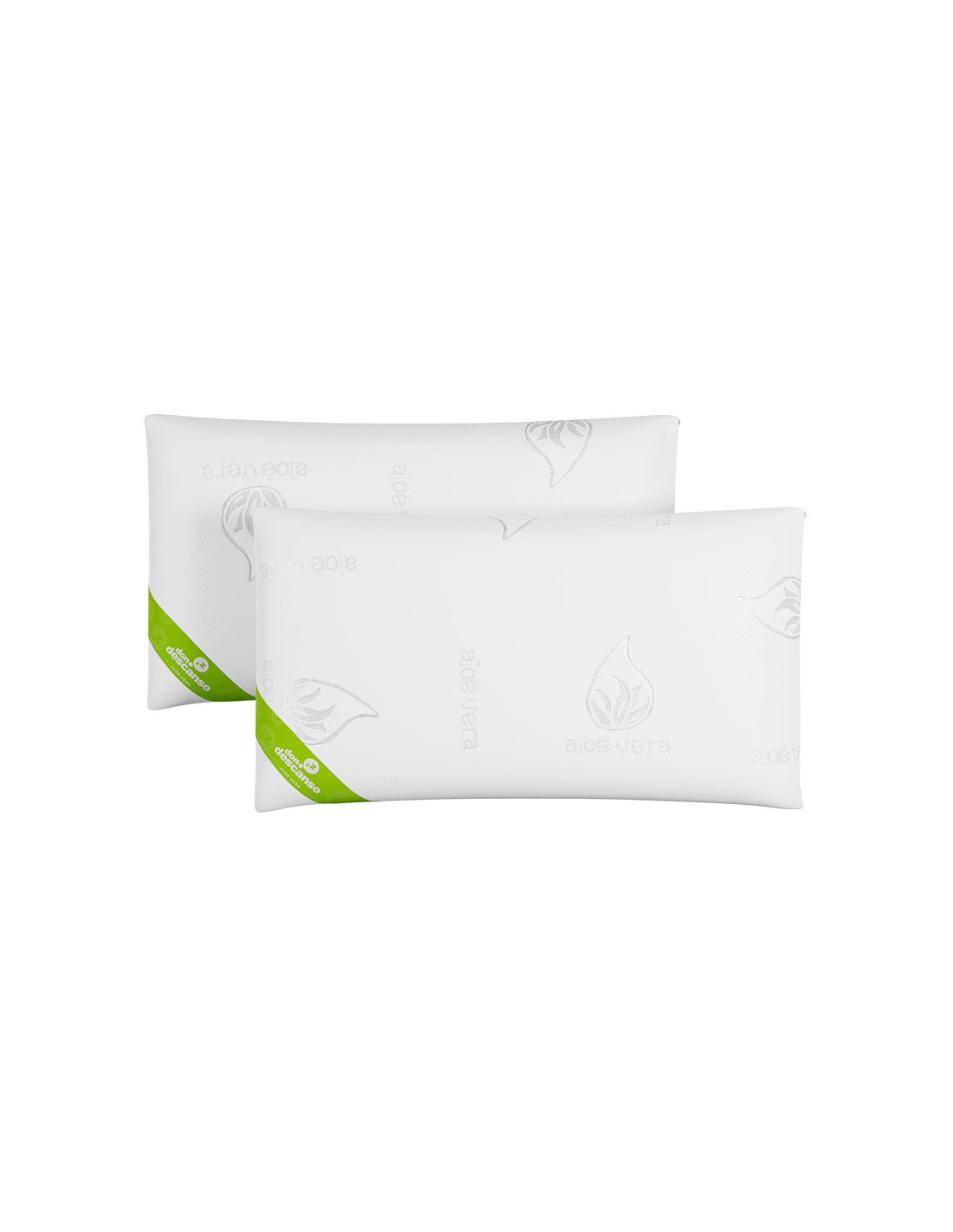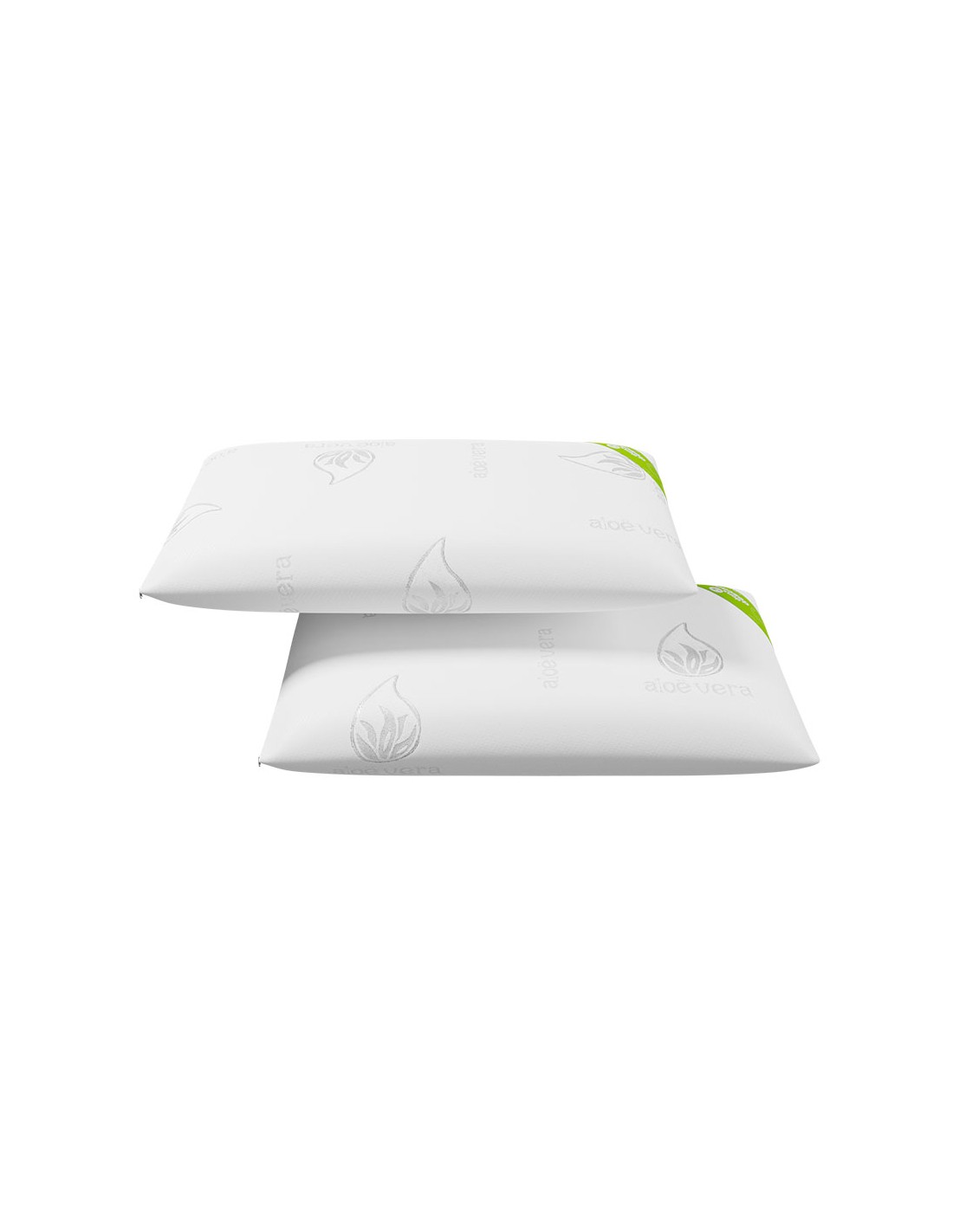 Almohadas de copos aloe vera 70 x 38 cm. y altura +/- 15 cm. tejido strech de tacto suave, agradable y con alta transpiración. los copos viscolásticos mejoran la acogida, proporcionando un confort óptimo y una postura correcta de cuello y cabeza para el descanso se envían enrolladas y envasadas