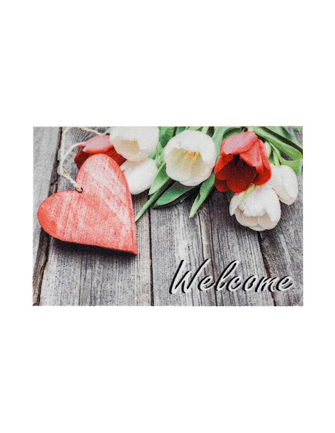 Felpudo de interior deco print 100% poliamida, 40 x 60 cm, flores corazón welcome