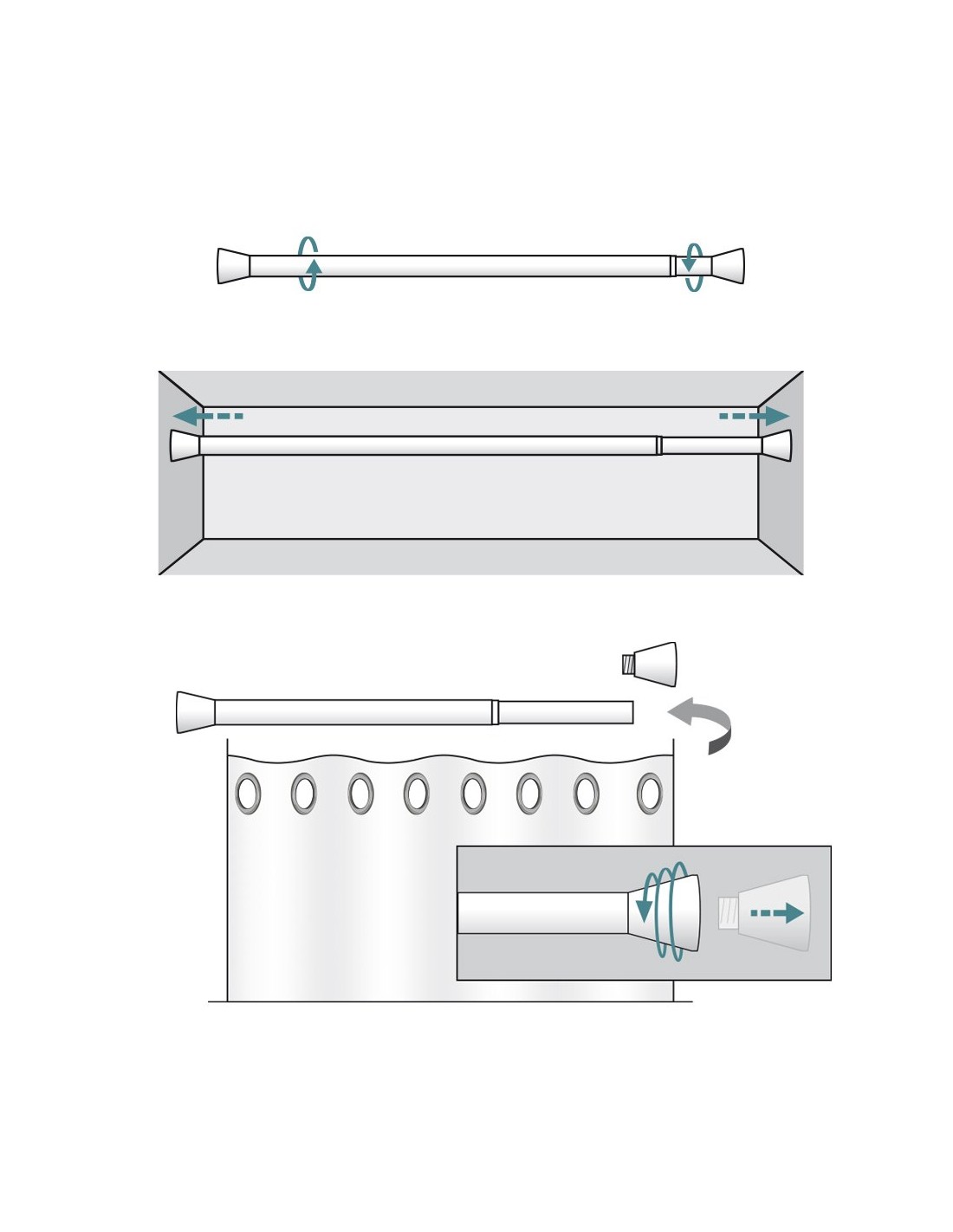 Barra extensible multiuso a presión sin taladro, plata, ø2,8 - 2,5 x 120 - 210 cm