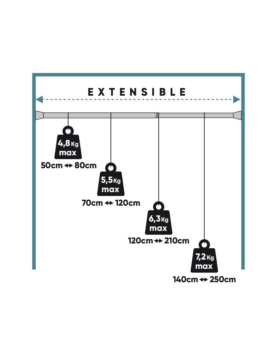 Barra extensible multiuso a presión sin taladro, madera, ø2,8 - 2,5 x 50 - 80 cm