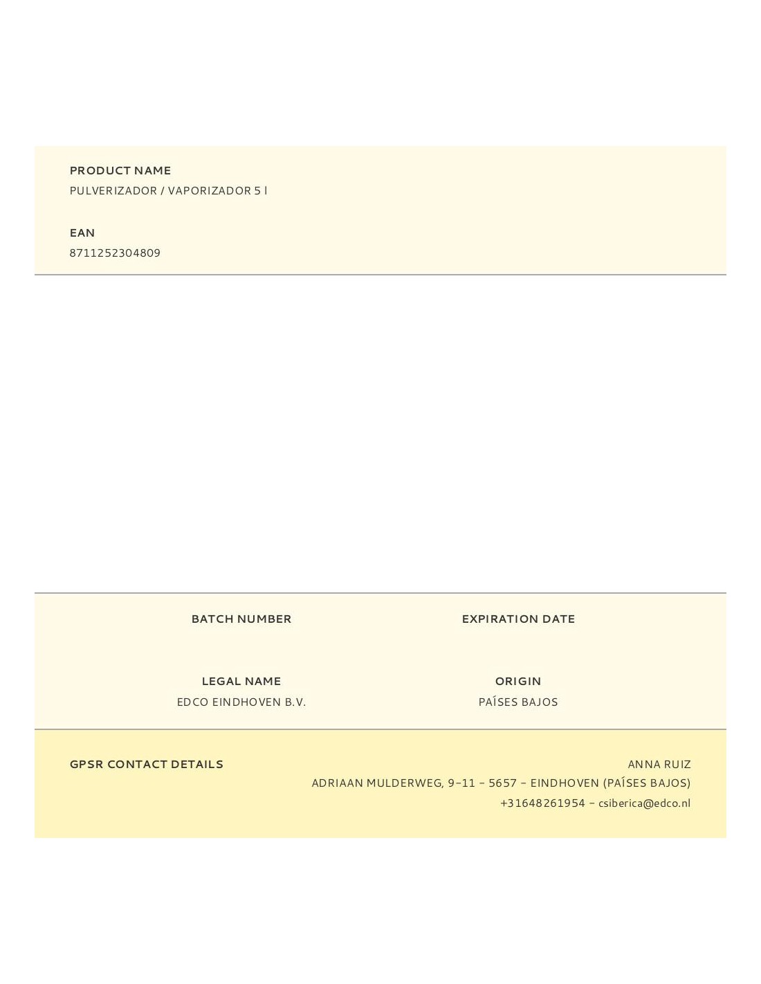 Pulverizador / vaporizador 5 l, contenedor con indicador de nivel, con correa de transporte, manguera larga y flexible