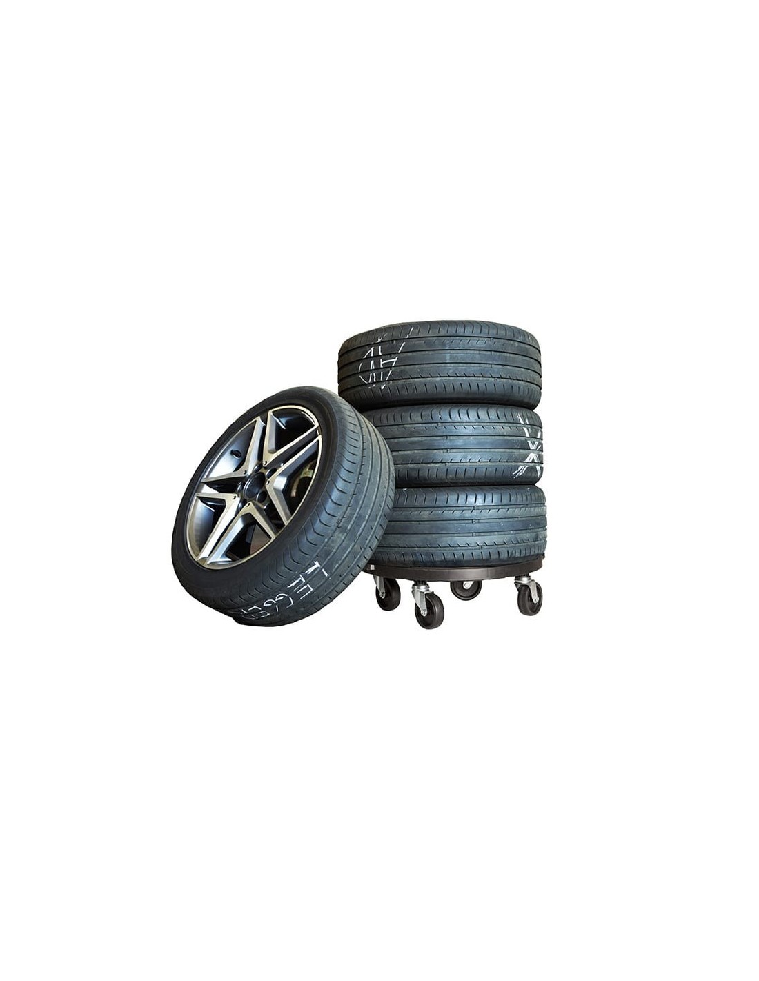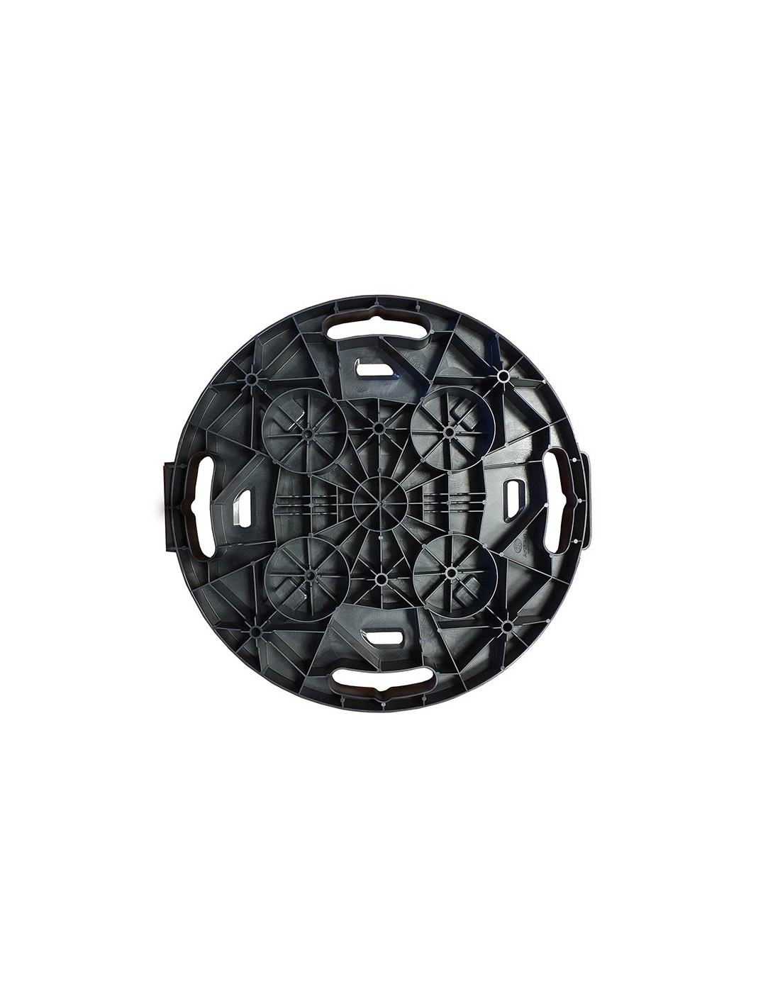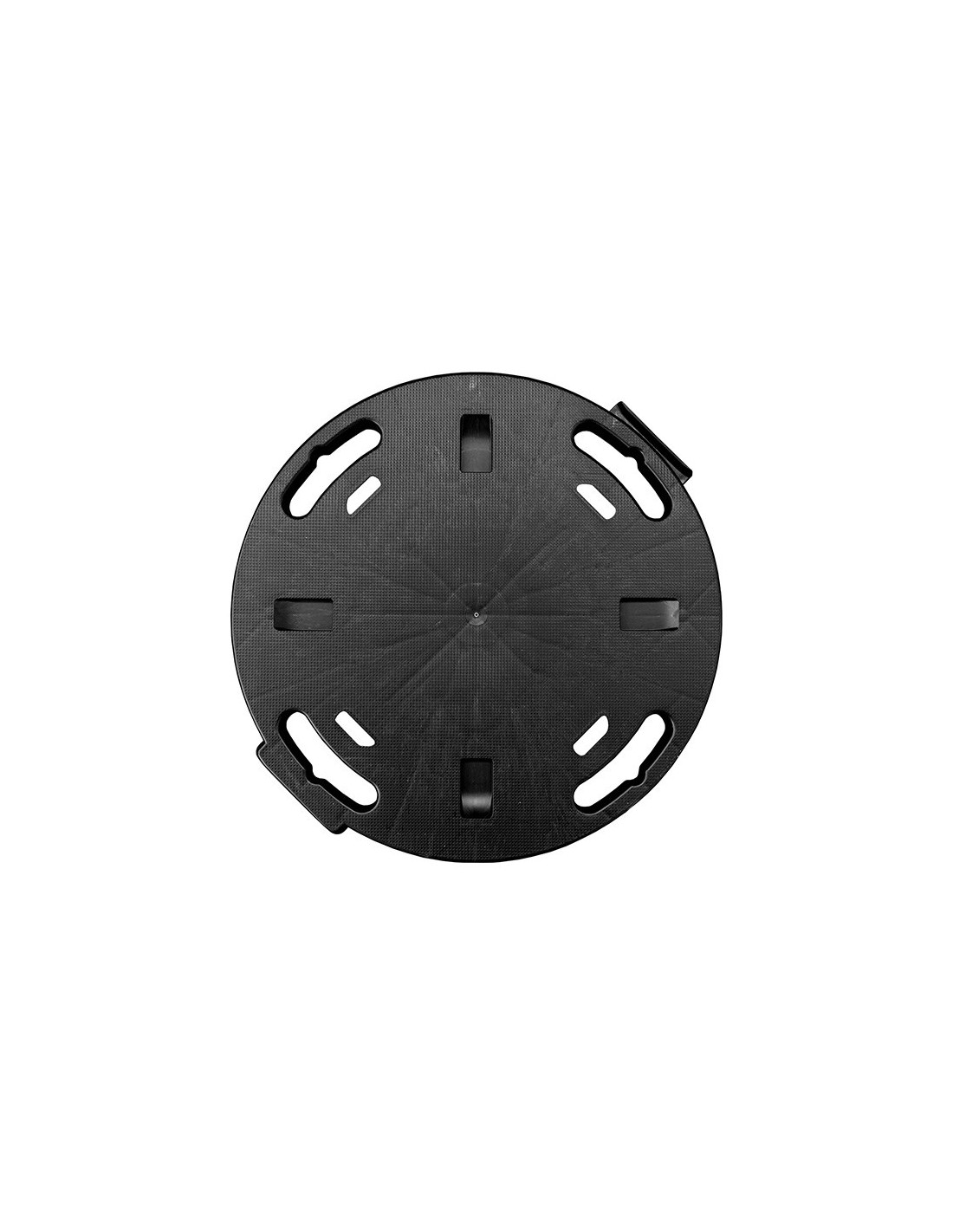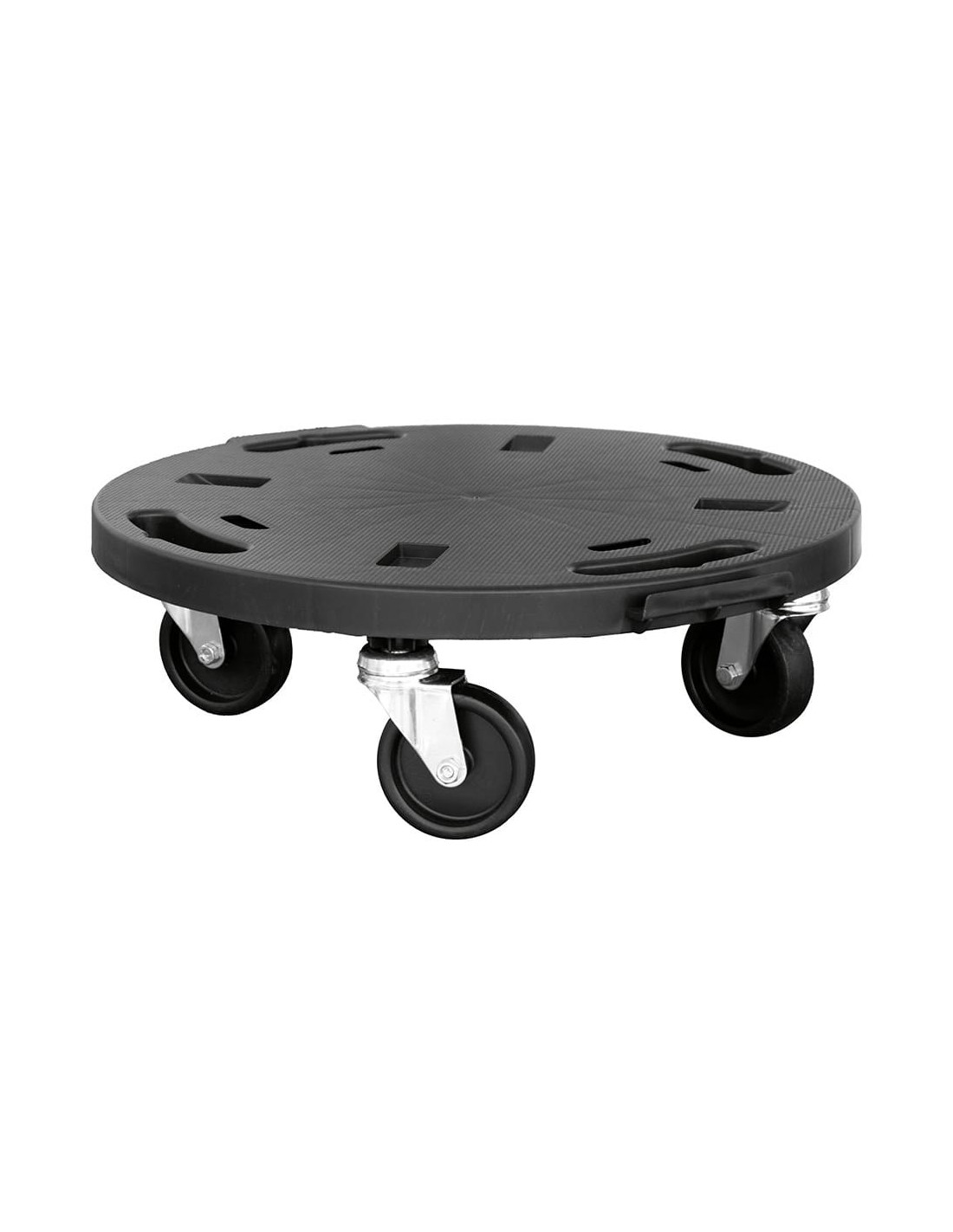 Plataforma redonda con ruedas fabricada en polipropileno, con sistema de enganche para ampliar la plataforma, equipada con asas para su transporte cuando no se utiliza, color negro, capacidad de carga 275 kg, ø400 x 125 mm