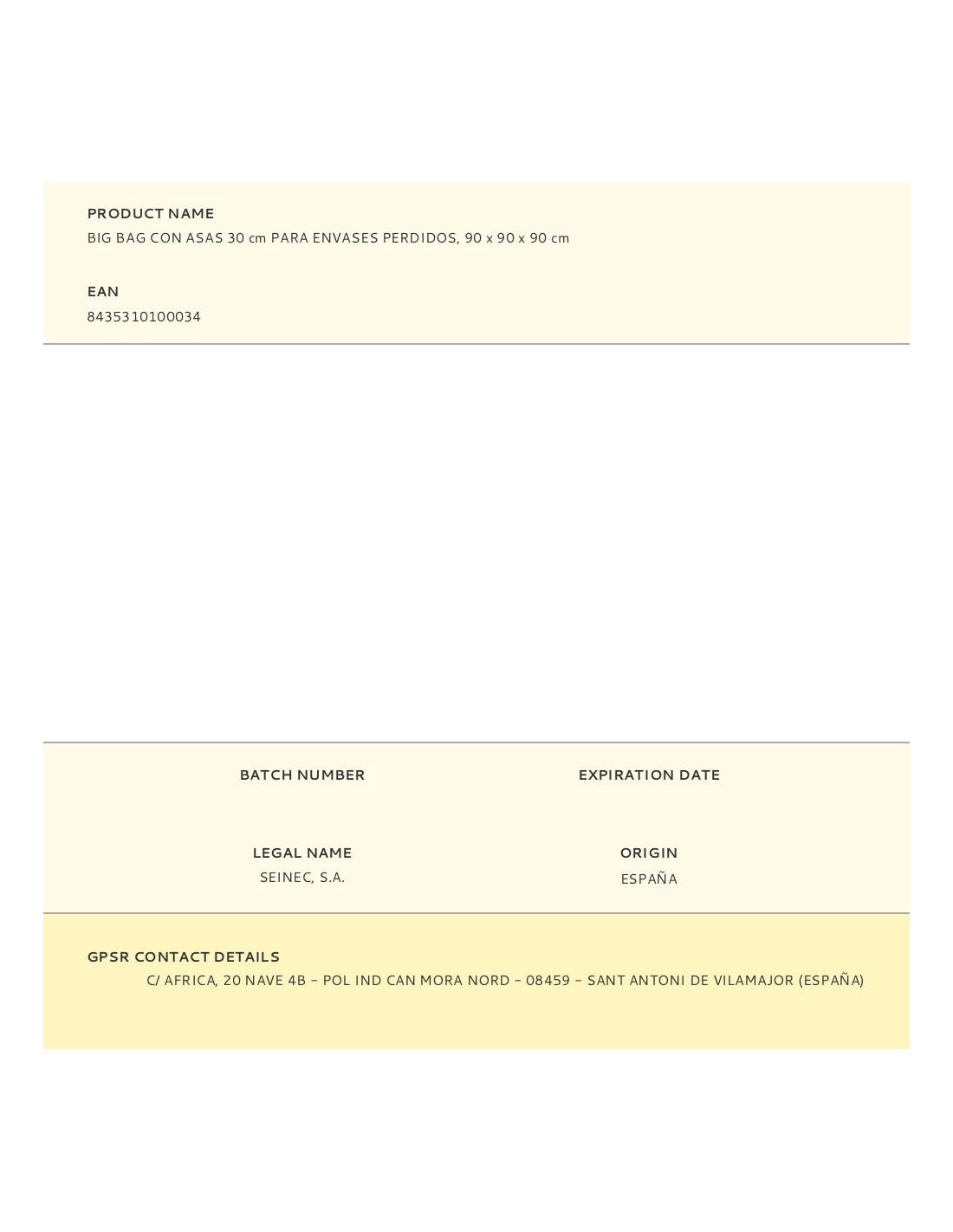 Big bag con asas 30 cm para envases perdidos, 90 x 90 x 90 cm