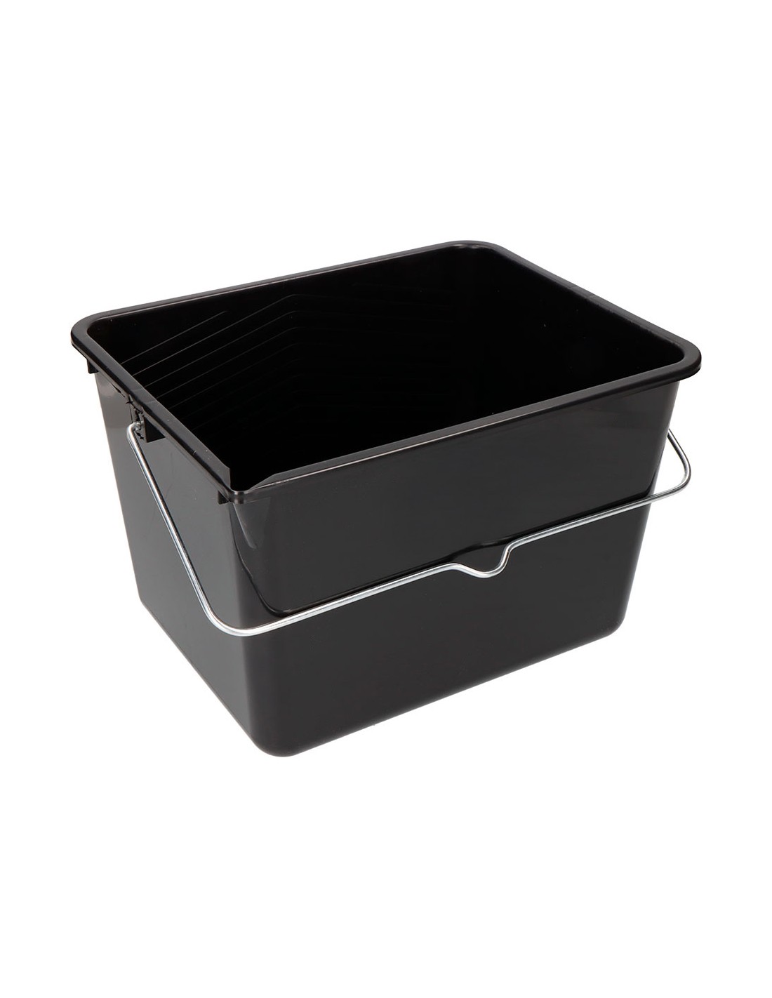 Cubeta de plástico resistente con lateral vertedor y superficie lateral estriada para facilitar la descarga correcta de pintura del rodillo. para todo tipo de pintura. cuenta con escala volumétrica en litros en su interior. capacidad para 8 litros de pintura y apta para trabajar con rodillos hasta 18 cm. con asa resistente. dimensiones: 279 x 219 x 187 mm